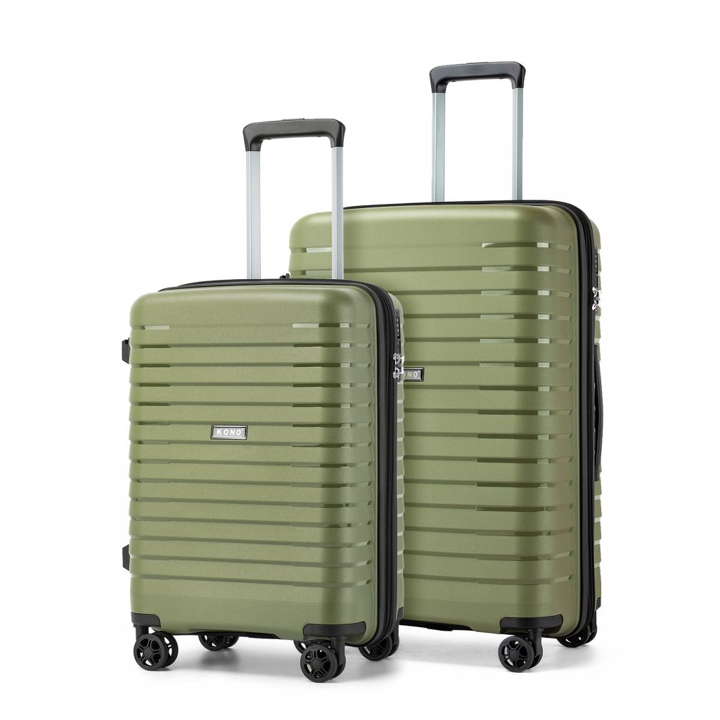 2 Set cestovných kufrov - rozšíriteľný s držiakom na pohár, zelený