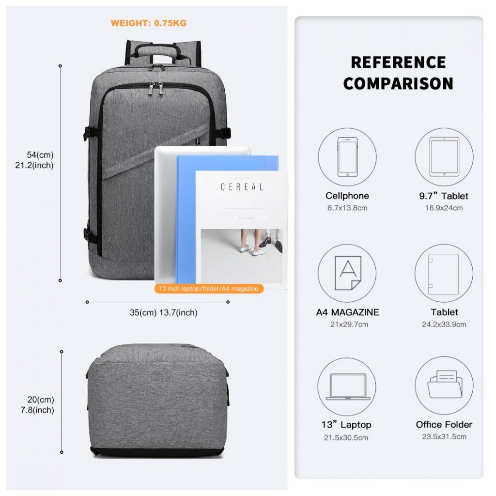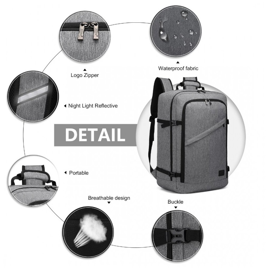 Batoh - biznis cestovný, vhodný do lietadla, veľký, 38L, šedý