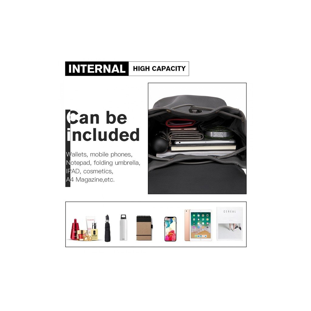Štýlový dámsky batoh sa dokonale hodí do školy, práce aleb nákupy. Jeho hladký povrch z eko kože v jednofarebnom prevedení spolu so zlatými doplnkami dokonale obohatí Váš školský, pracovný alebo každodenný outfit. Batoh sa uzatvára sťahovacou šnúrkou z eko kože a cvokom. Bočné zipsy v prednej časti umožnia batohu zväčšiť alebo zmenšiť vnútorný objem podľa potreby. Vnútro batohu je priestranné s malými otvorenými vreckami a jedným zipsovým vreckom na drobnosti. Pohodlné nosenie zabezpečia dva popruhy, ktoré možno nastaviť do ľubovoľnej dĺžky.
