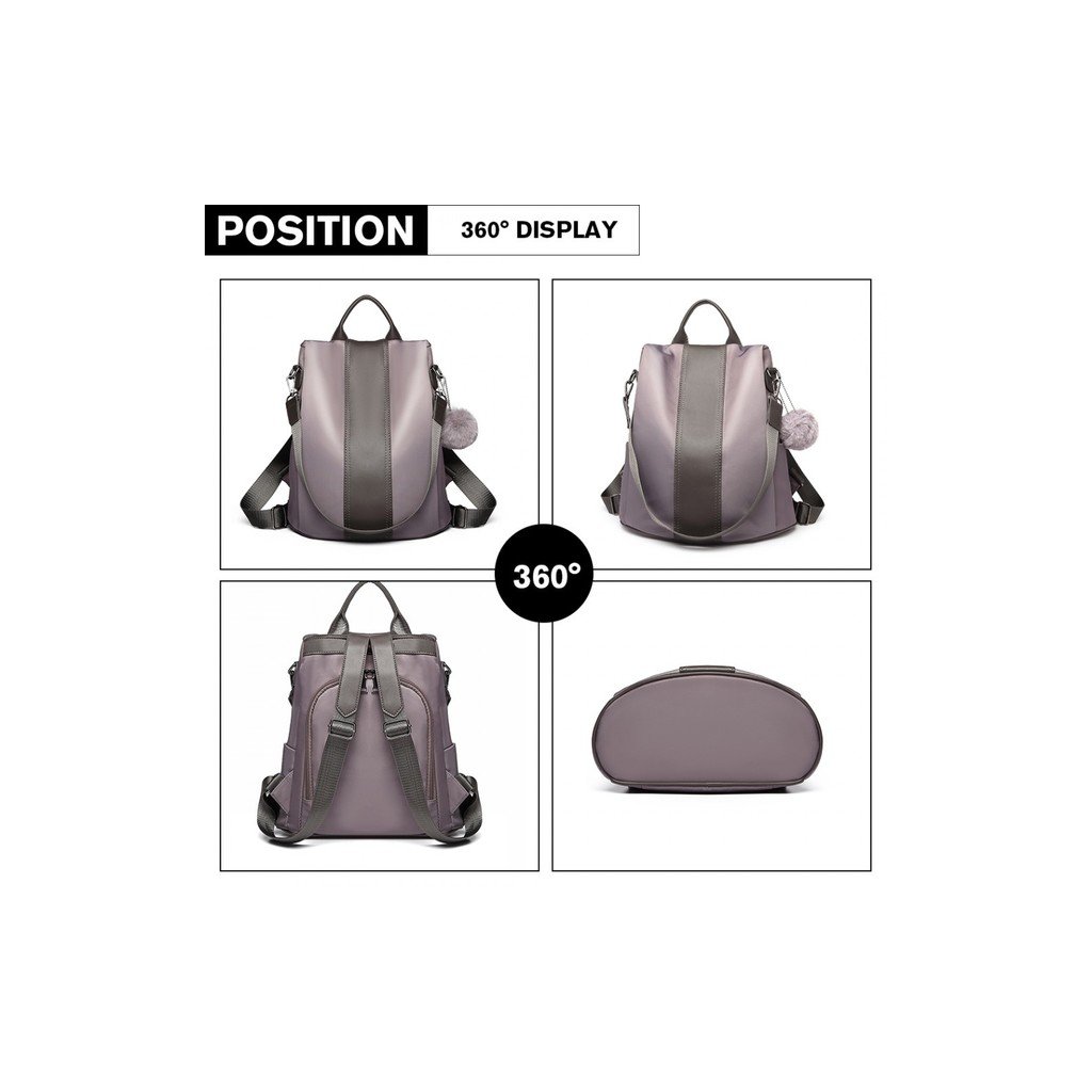 Nadčasový dizajn tohto ruksaku naozaj oceníte. Kombinácia nylonu a eko kože je tým, čo robí tento batoh výnimočný. Pom pom prívesok už je len doplnok, ktorý vnesie do elegancie veselosť. Batoh možno nosiť aj ako hobo kabelku na ramene. Má zipsový bezpečný otvor na chrbtovej časti, čo Vás poteší napríklad pri cestovaní. Drobnosti uschovajú malé vnútorné vrecká.