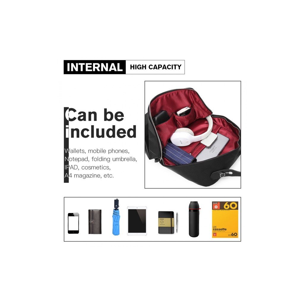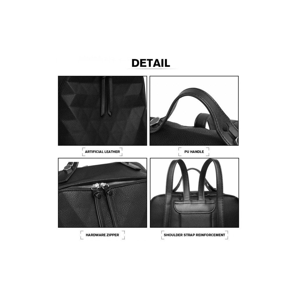 Kombinácia eko kože a tmavých doplnkov doplní tvoj každodenný outfit. Uschová typické dámske vecičky spolu s tabletom, pitím alebo skladacím dáždnikom. Má hlavnú priestrannú priehradku. Uzatvára sa zipsom. Pohodlne sa nosí popruhmi na ramenách. Jednoduchosť a doplnky doplnia dizajn batohu na jedničku.