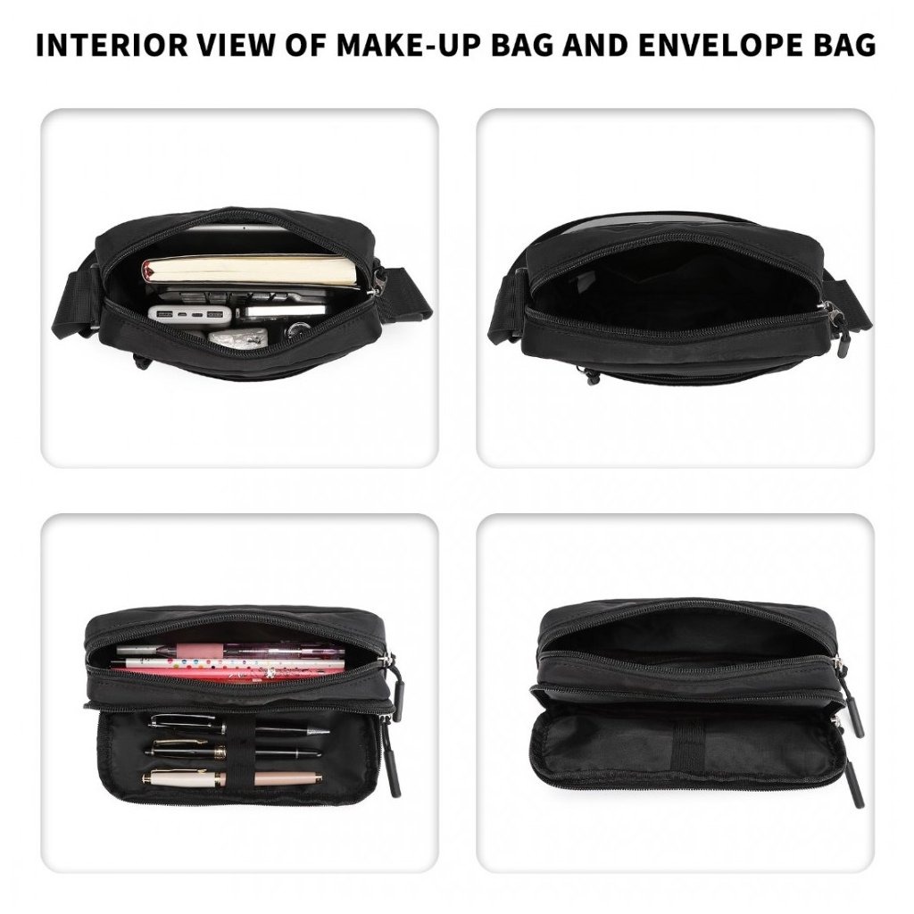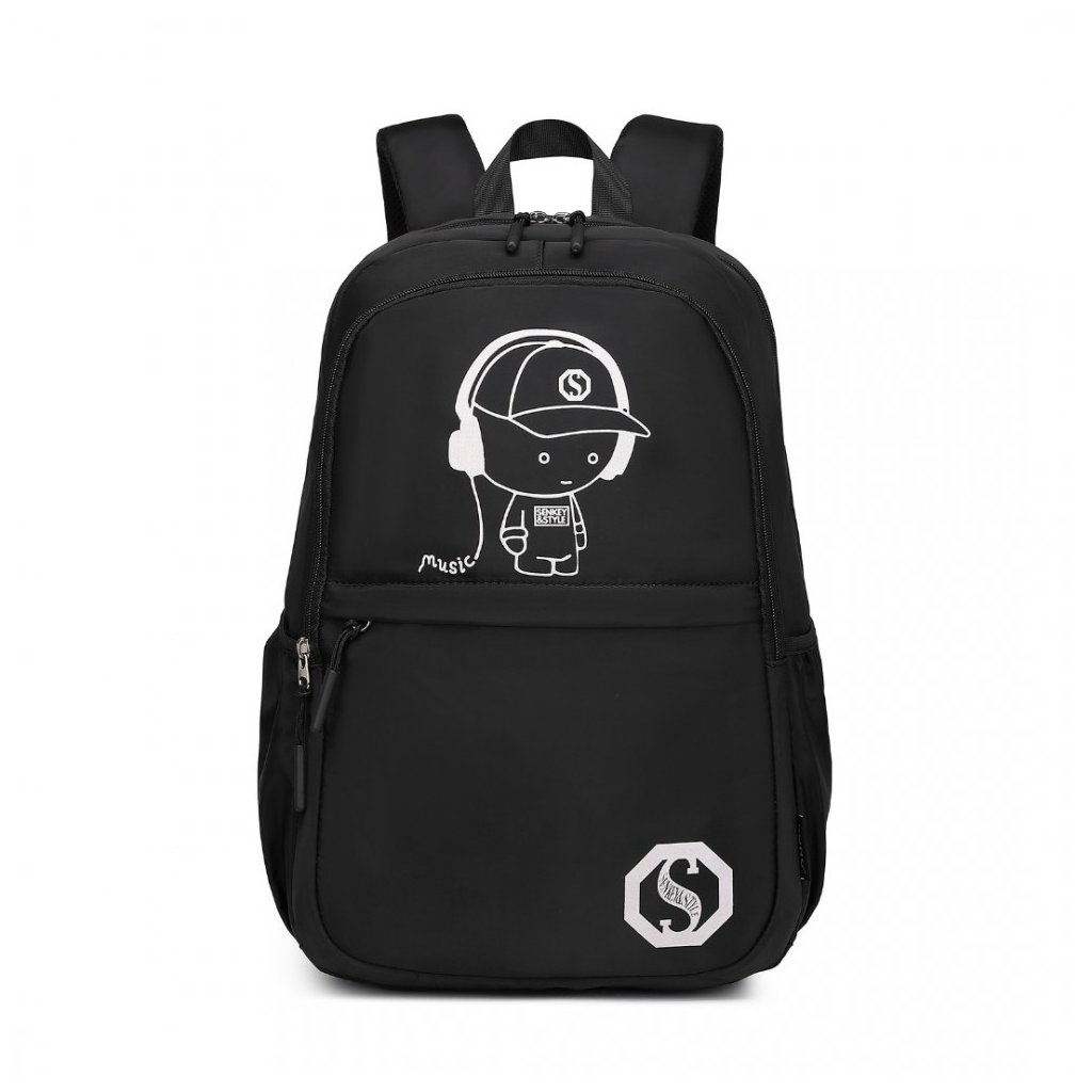 Batoh - svietiaci v tme s peračníkom a taškou cez rameno, čierny