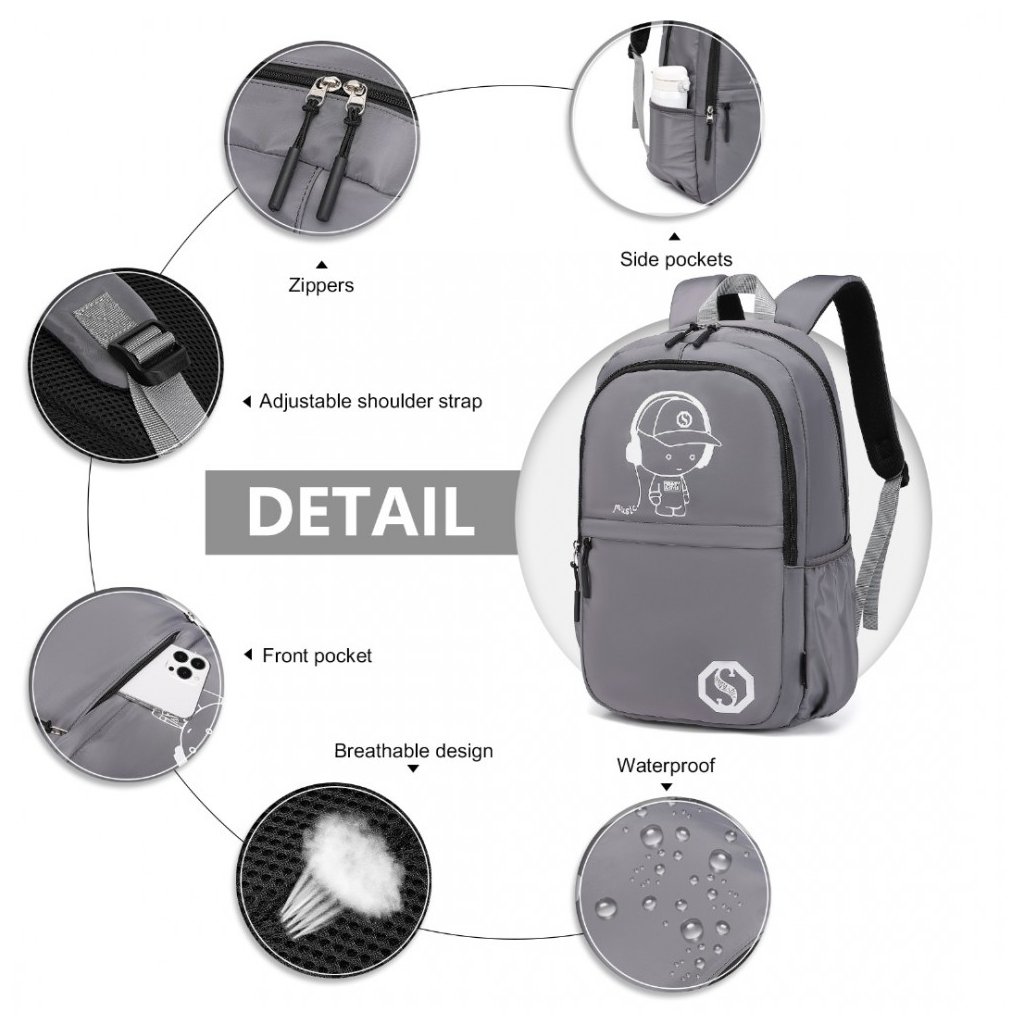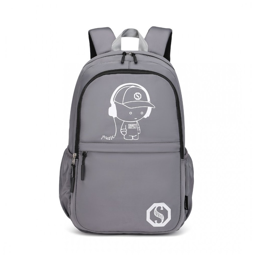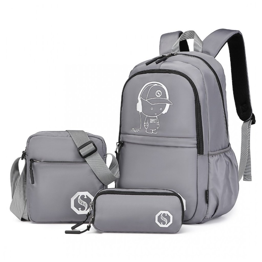 Batoh - svietiaci v tme s peračníkom a taškou cez rameno, šedý