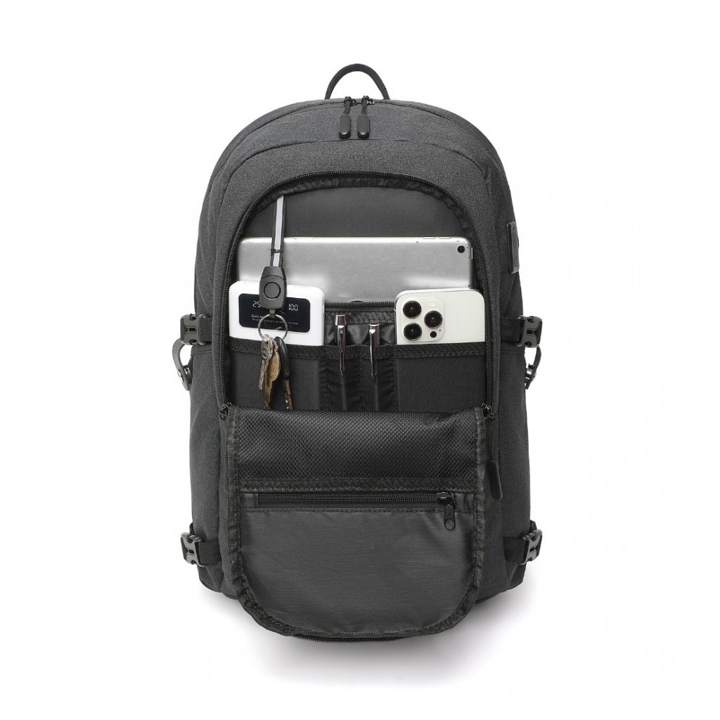 Batoh - viacpriehradkový s nabíjacím portom, čierny