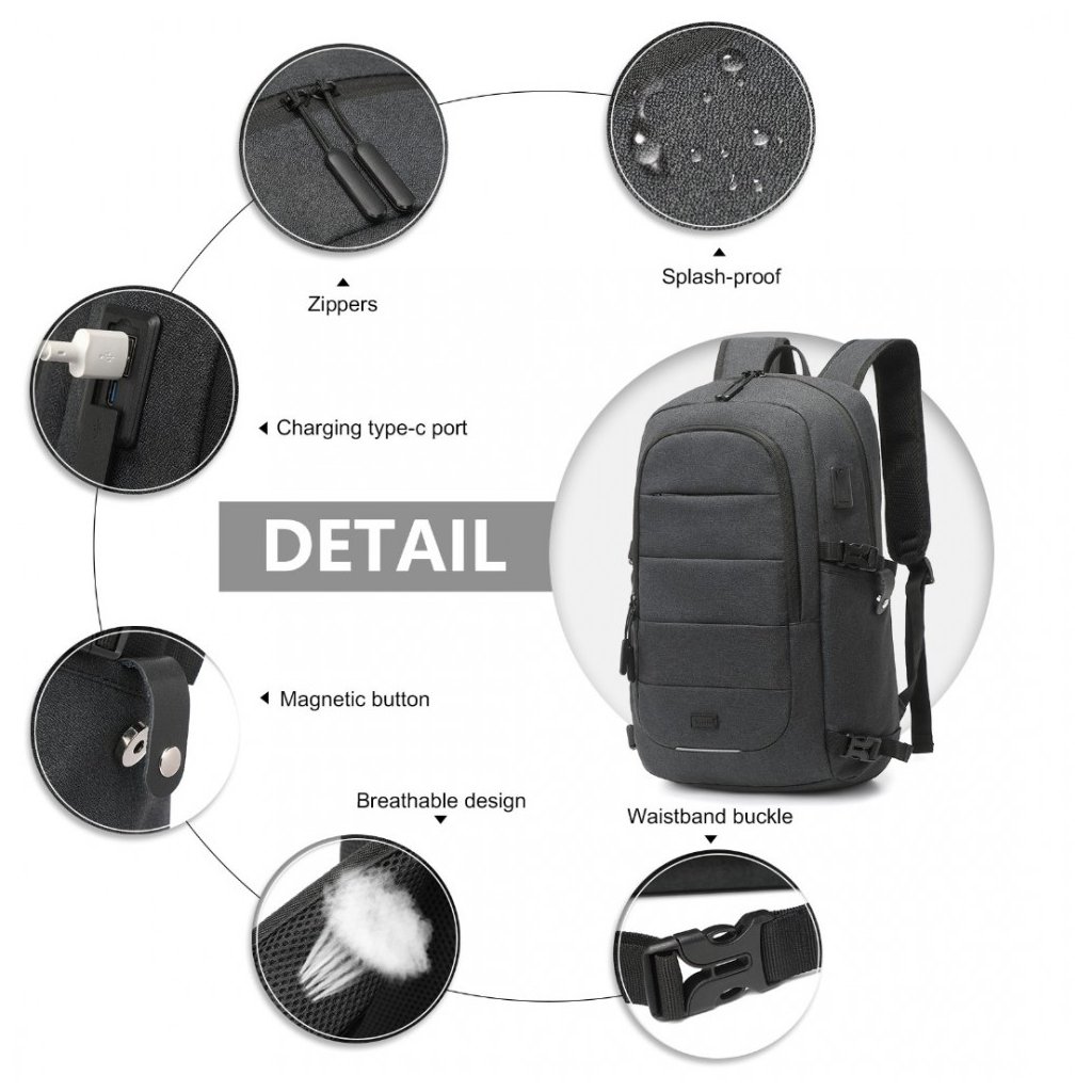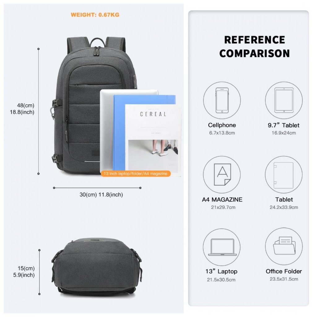 Batoh je vybavený USB nabíjacím portom, vďaka ktorému môžete pohodlne dobíjať svoje elektronické zariadenia počas pohybu. Nastaviteľné vystužené popruhy zaručujú maximálne pohodlie pri nosení, a s váhou len 0,7 kg je ľahký a praktický na každodenné použitie. Zvoľte si tento čierny batoh, ktorý spája funkčnosť, štýl a komfort, a uľahčí vám každý deň.