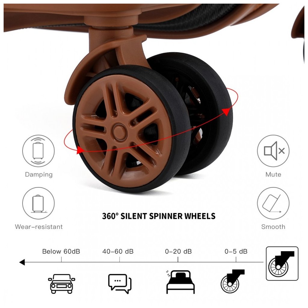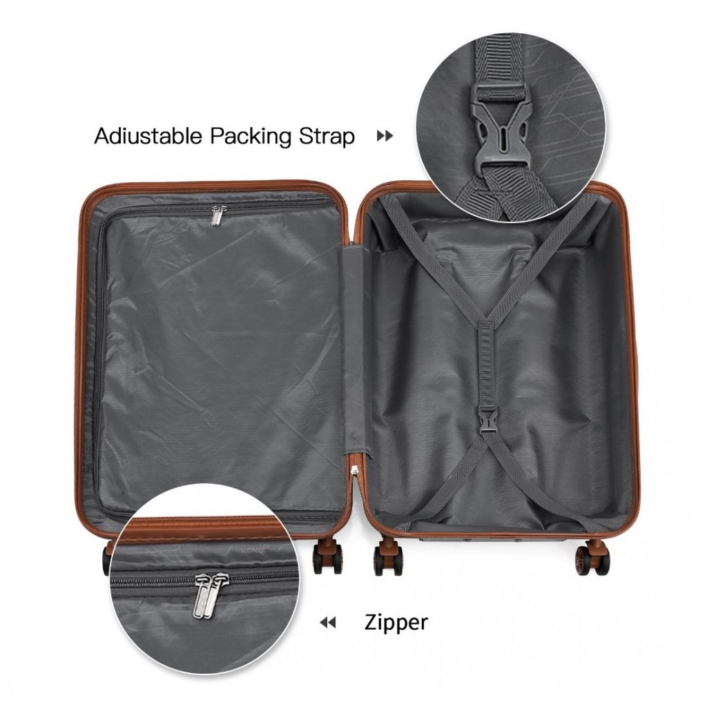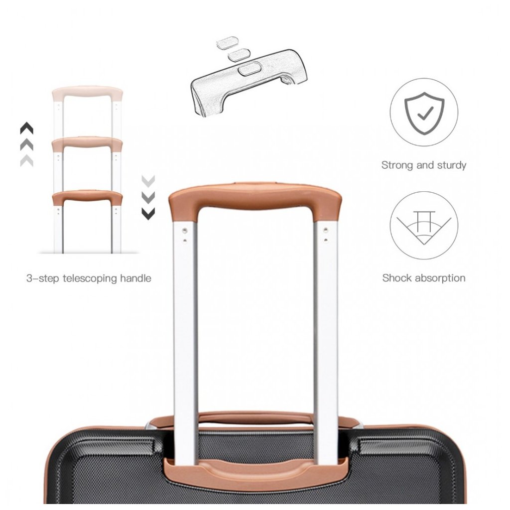 Kufor je z pevného ABS plastového materiálu, ktorý je pevný a odolný voči nárazom a poškodeniu. S batožinou sa narába prakticky a ľahko vďaka teleskopickej hliníkovej rúčke a kolieskam. O bezpečnosť vašej batožiny sa naozaj nemusíte báť, nakoľko kufor disponuje so špeciálnym zámkom na kód. Vystužené vnútro je dokonale prispôsobené pre vašu batožinu, ktorú zaistíte gumovými páskami. Kozmetické drobnosti či iné technologické vecičky možno vložiť do zipsovej priehradky.