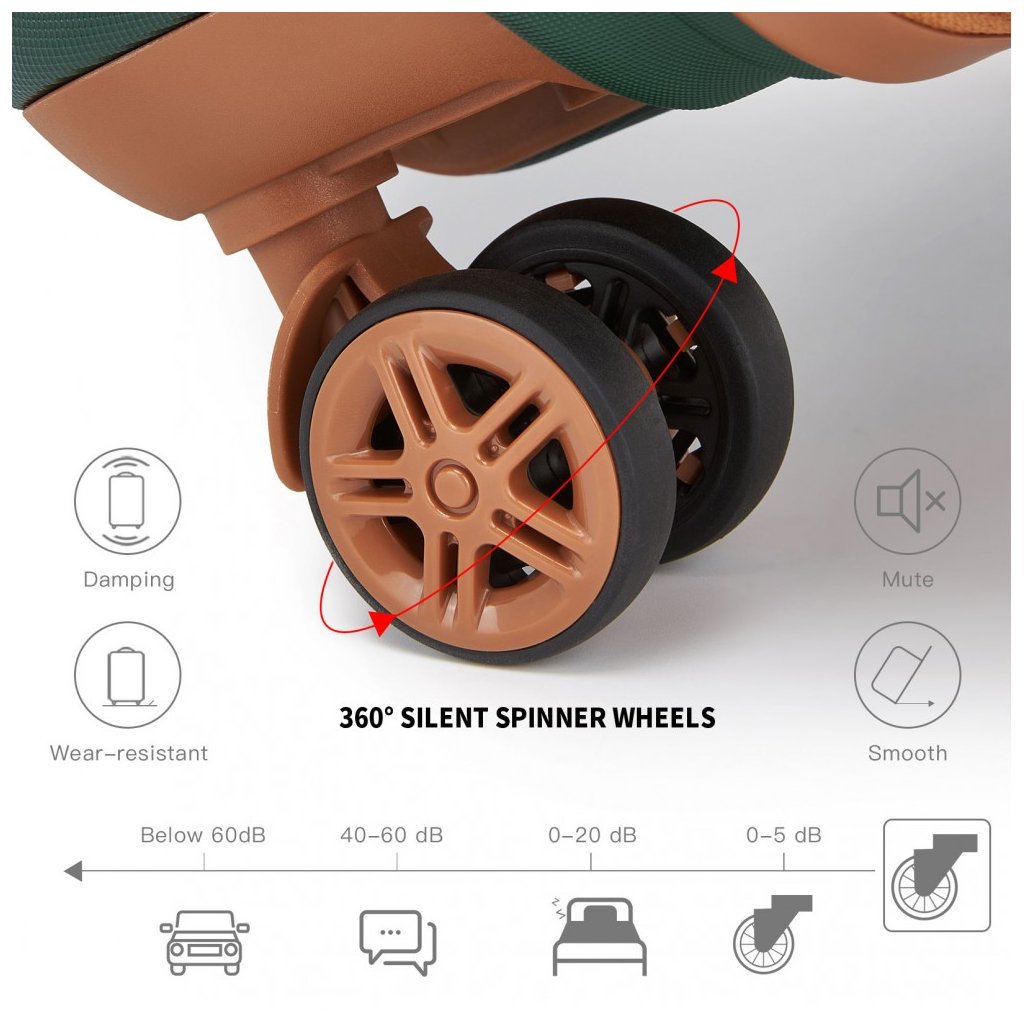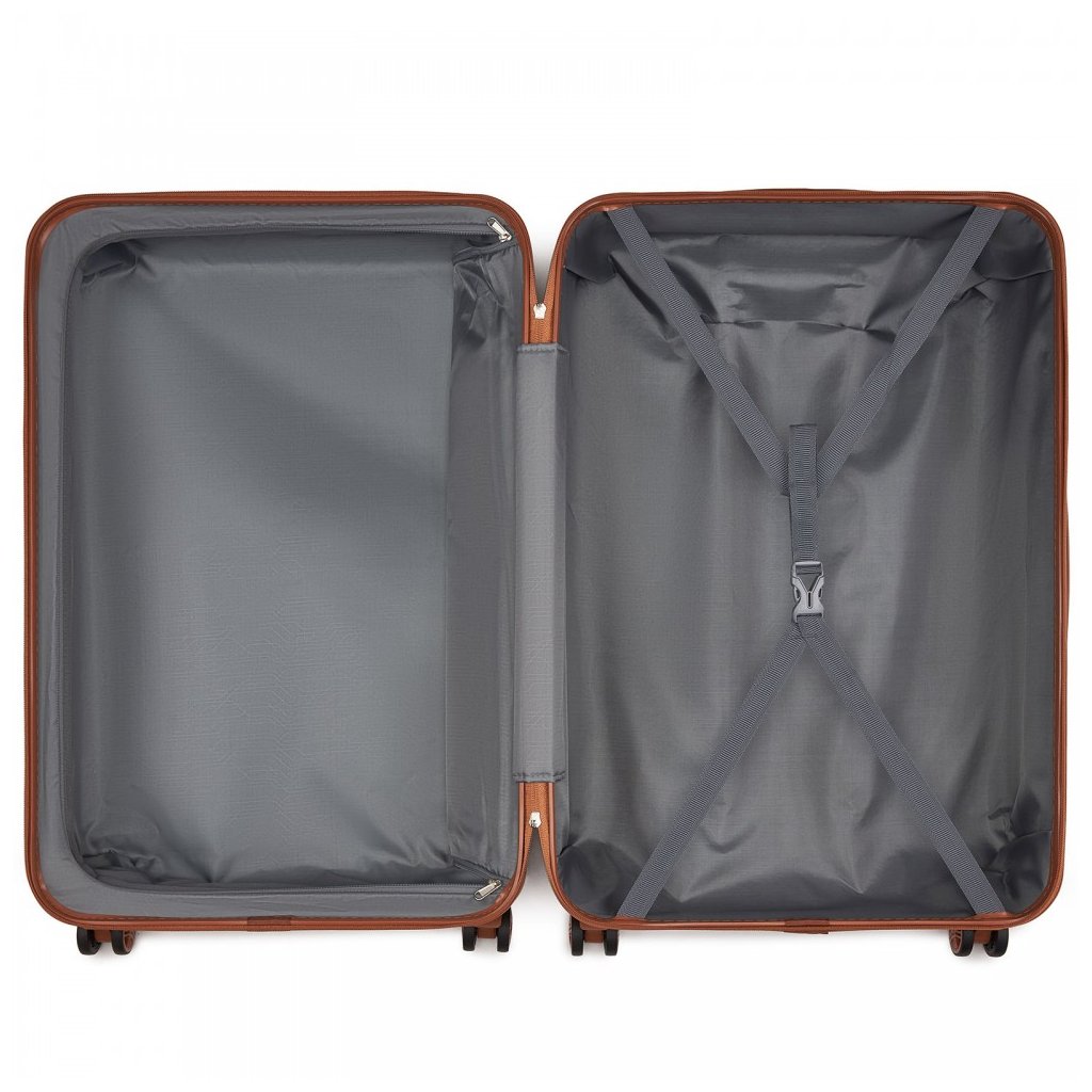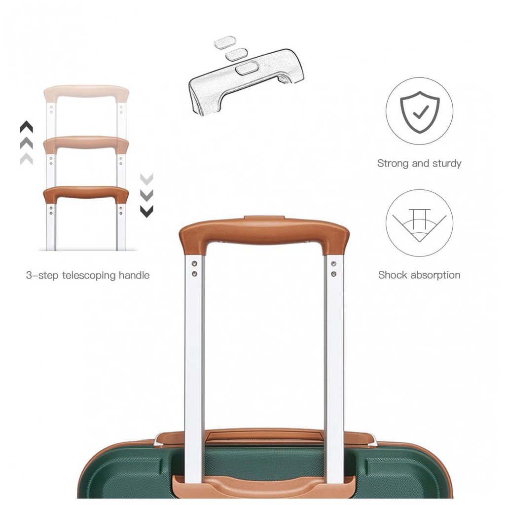 Pevný tvrdý ABS plastový materiál v jednofarebnom prevedení je ladený v unisex štýle pre pánov aj dámy. Kufor má hlavný úložný priestor s nepremokavou podšívkou. Vystužené vnútro je dokonale prispôsobené pre vašu batožinu, ktorú zaistíte gumovými páskami. Kozmetické drobnosti či iné technologické vecičky možno vložiť do zipsového priečinku. S batožinou sa narába prakticky a ľahko vďaka teleskopickej hliníkovej rúčke a 360 - stupňovým kolieskam. O bezpečnosť vašej batožiny sa naozaj nemusíte báť, nakoľko kufre disponujú so špeciálnym zámkom na kód. Uzatvára sa na zips.
