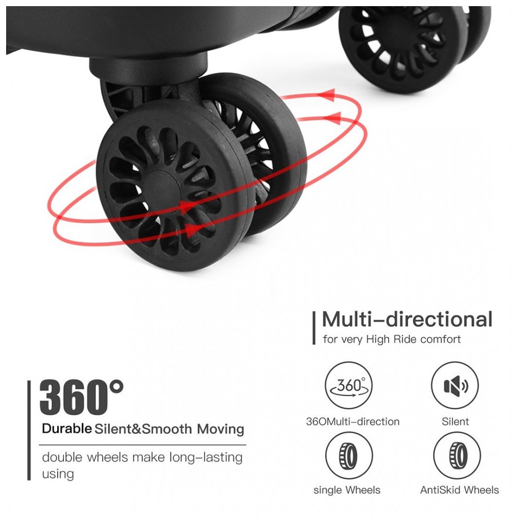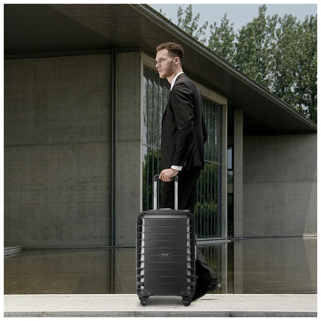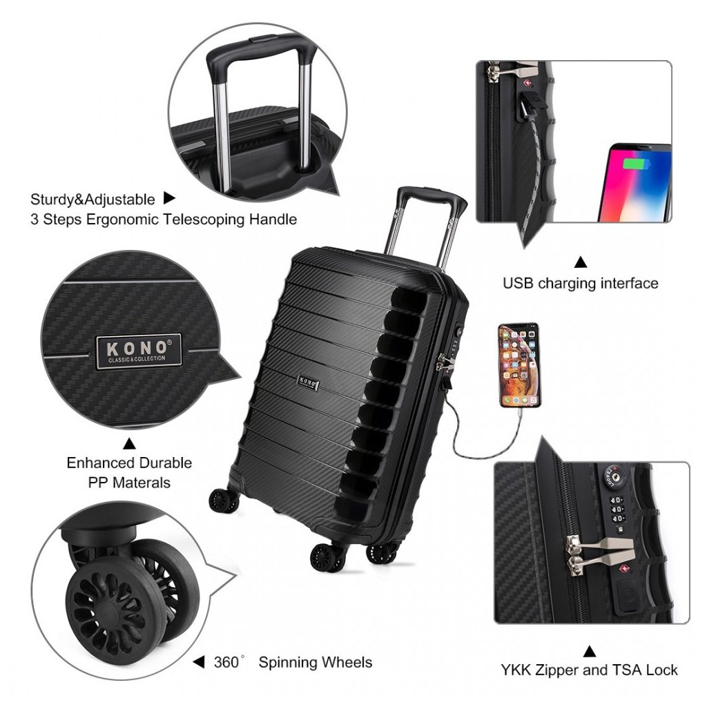 Kufor v elegantnej čiernej farbe s USB nabíjacím portom pridáva moderný šmrnc k vašim cestám. Vyrobený z odolného PP materiálu poskytuje spoľahlivú ochranu pre vaše veci.