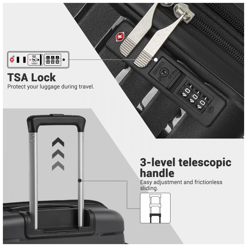 Cestovný kufor - rozšíriteľný s držiakom na pohár, malý, čierny