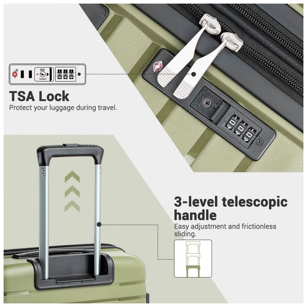 Cestovný kufor - rozšíriteľný s držiakom na pohár, malý, zelený
