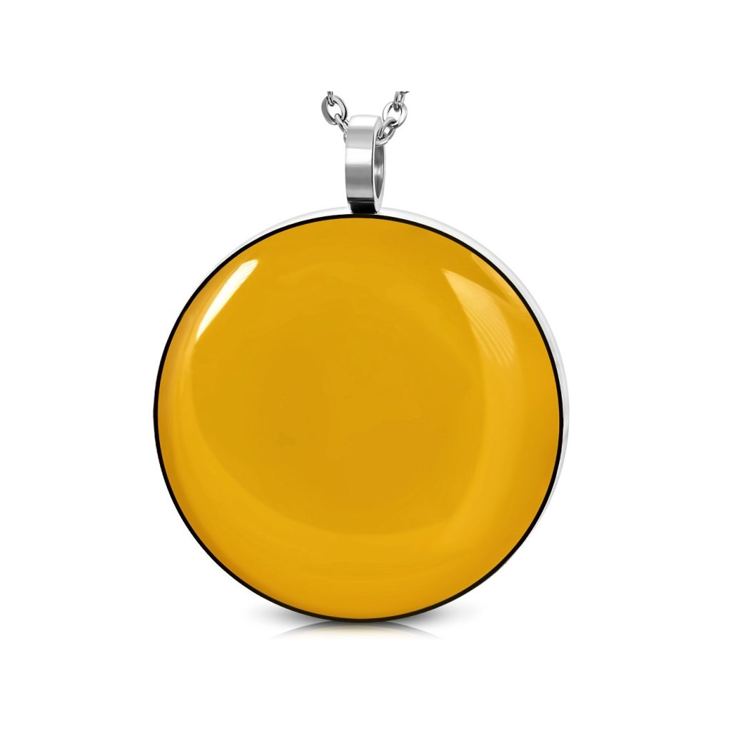 Pekná dámska retiazka s príveskom vyrobený z chirurgickej ocele. Prívesok má tvar kruhu, ktorý je väčší, jeho priemer sú 3 cm a je krásnej svetlej oranžovej farby. Tento šperk nikto len tak ľahko neprehliadne. Výborne sa dá zladiť napríklad s náušnicami, či s náramkom. Je vhodný pre každú dámu, ktorá rada zaujme zaujímavým šperkom. Materiál retiazky aj prívesku je kvalitná chirurgická oceľ, ktorá sa vyznačuje svojou odolnosťou a pevnosťou. Nekoroduje ani nečerná, čiže zaručí Vášmu šperku jeho stály lesk. Šperky z chirurgickej ocele si nevyžadujú žiadnu špeciálnu starostlivosť. Pri tomto produkt si môžete zvoliť Vami požadovanú dĺžku retiazky ak Vám nevyhovuje jej základná dĺžka.