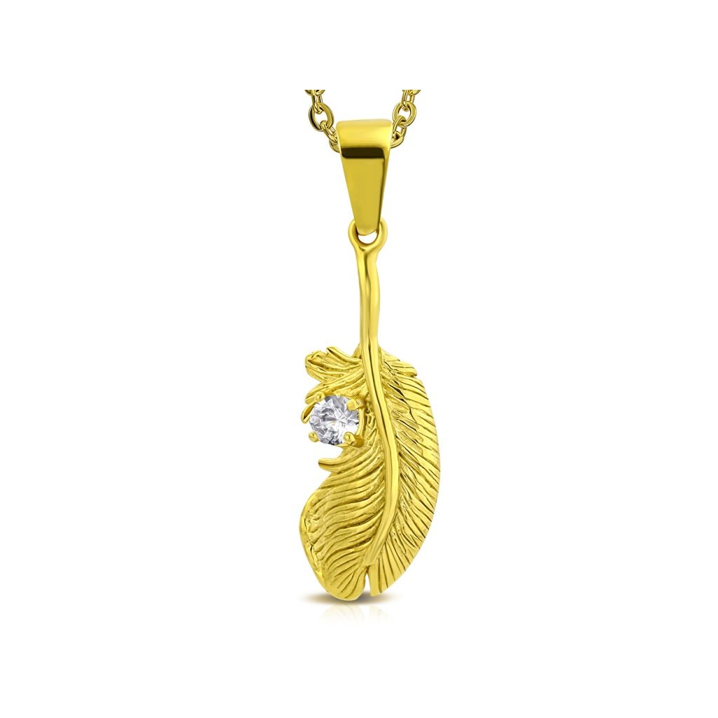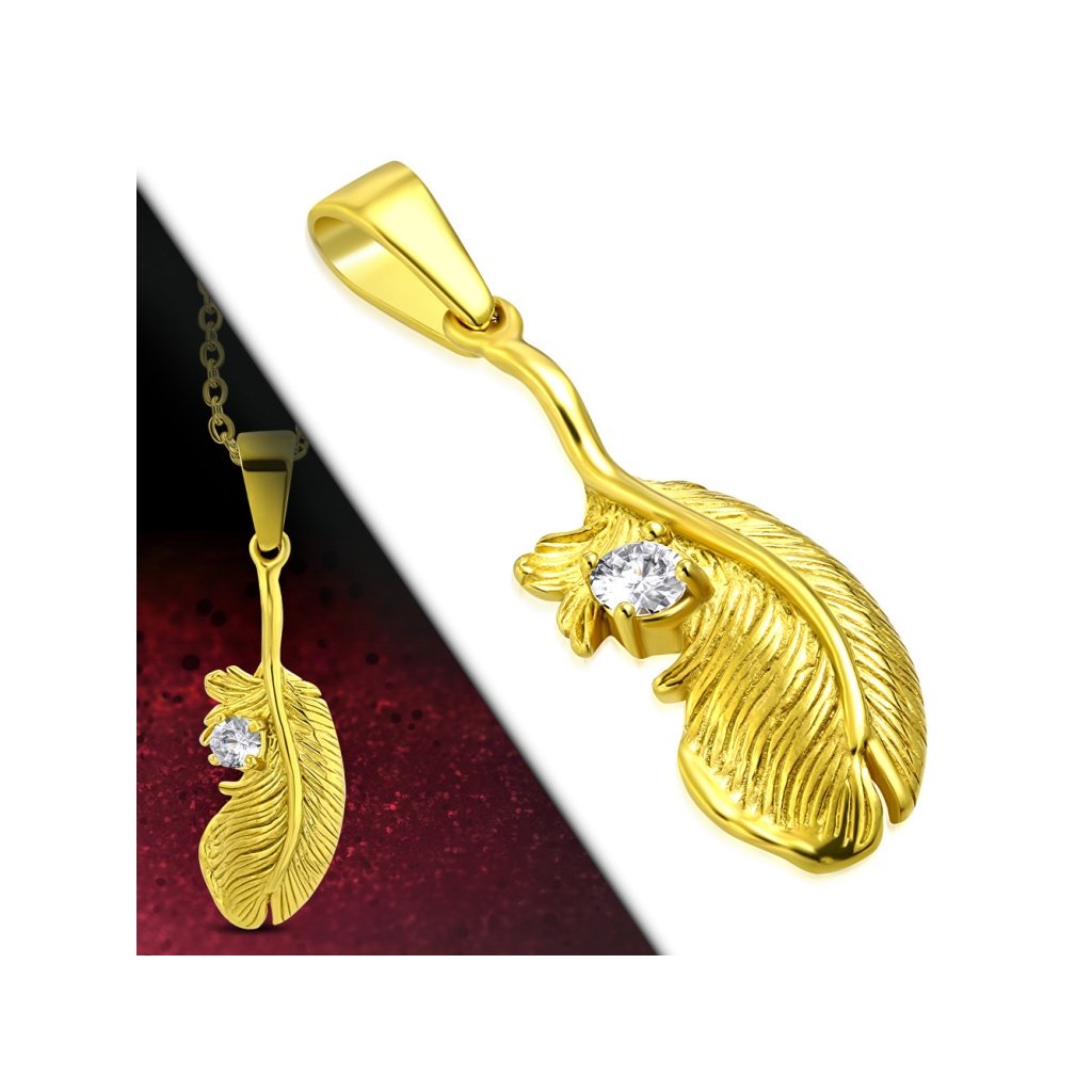 Dámska retiazka s príveskom v tvare pierka z chirurgickej ocele Gold Feather
