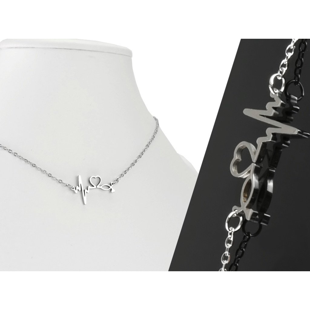 Dámska retiazka s príveskom z chirurgickej ocele srdce a pulz