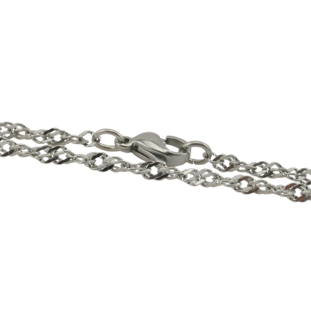 Dámska retiazka z chirurgickej ocele v striebornom prevedení. Krásna retiazka pre dámy je pospájaná z malých očiek v točenom štýle. Pôsobí veľmi elegantne a módne, je skvelým doplnkom, ktorý sa dá výborne zladiť s inými doplnkami. Takýto šperk by nemal chýbať žiadnej žene. Materiál retiazky je kvalitná chirurgická oceľ, ktorá je pevná a odolná. Jej výhodou je, že nekoroduje a nečerná, čiže Vám vydrží veľmi dlho. Je vhodná na bežné každodenné nosenie.