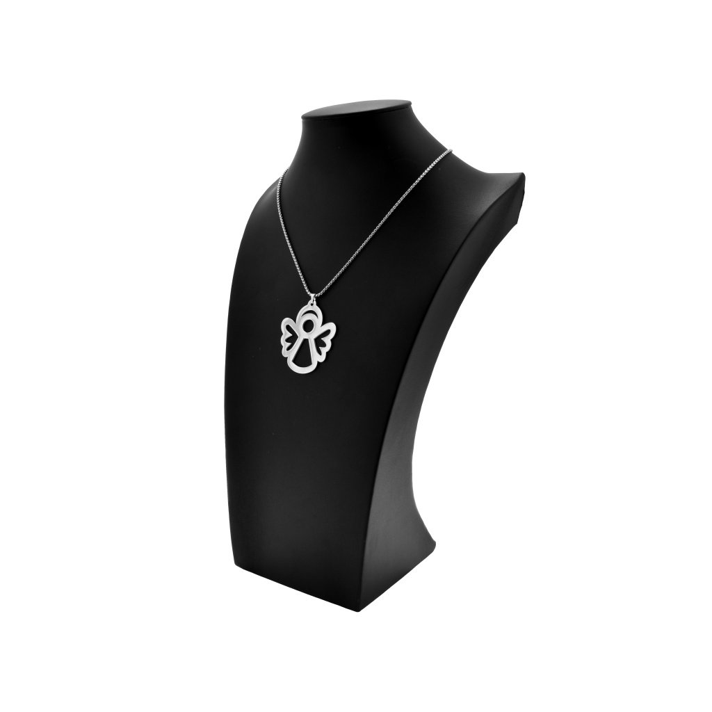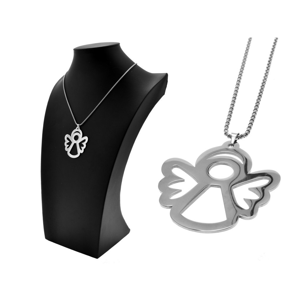 Dámska retiazka s príveskom anjel vyrobená z chirurgickej ocele. Prívesok je v tvare veľkého anjela z leštenej chirurgickej ocele, ktorá sa pekne leskne. Dámska retiazka s príveskom je tak vhodná pre dámy, ktoré preferujú väčšie šperky, alebo aj pre mlado dámy. Retiazka má obľúbený vzor BOX v tenšom prevedení. Šperky z chirurgickej ocele sú veľmi často vyhľadávané, pretože oceľ nekoroduje, nečerná a nevyžaduje si žiadnu špeciálnu starostlivosť. Oceľové šperky sú vhodné na bežné každodenné použitie, pretože sú hypoalergénne.