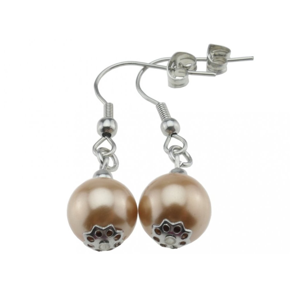 Jednoduché, no krásne dámske visiace náušnice. Náušnice sú zdobené korálkou v hnedej farbe s kaplíkom v tvare kvetinky. Náušnice majú africký háčik, vďaka ktorému je manipulácia s nimi jednoduchá. Klasika náušníc, ktorá nikdy neomrzí a nemala by chýbať medzi šperkami žiadnej ženy. Materiál náušníc je kvalitná chirurgická oceľ, ktorá je antialergická, a preto sú náušnice vhodné na bežné každodenné nosenie.