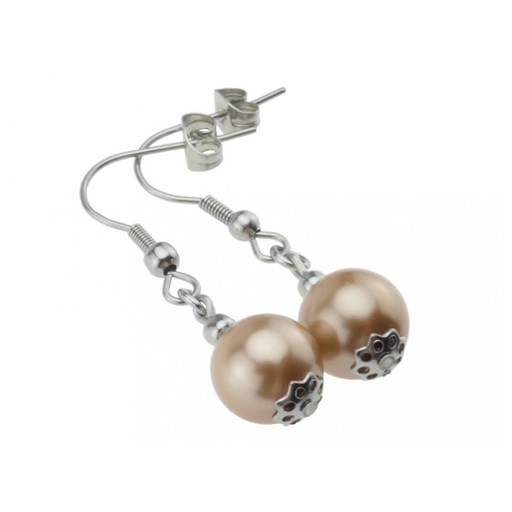 Dámske náušnice visiace z ocele s korálkou - hnedé + darčeková krabička zadarmo