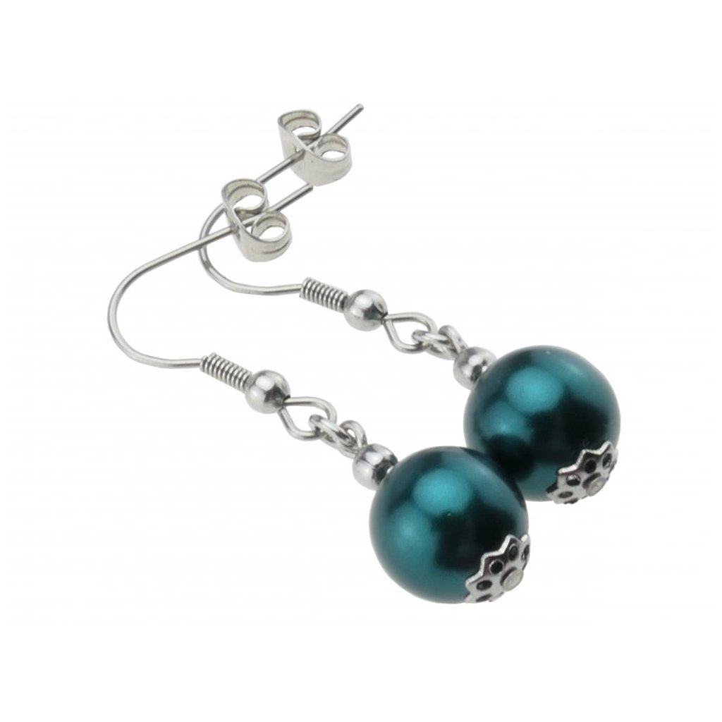 Dámske náušnice visiace z ocele s korálkou - tmavozelené + darčeková krabička zadarmo