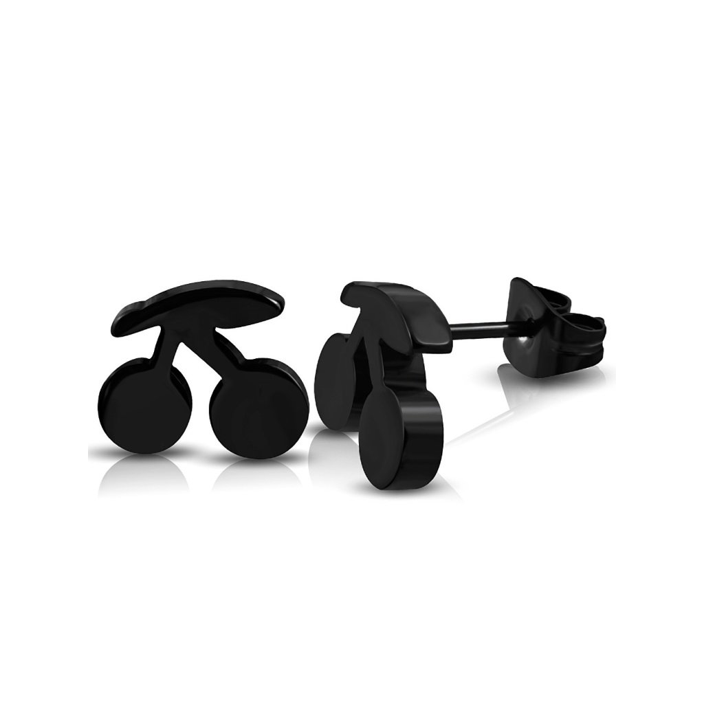 Náušnice dámske v čiernej farbe z ocele v tvare čerešničiek