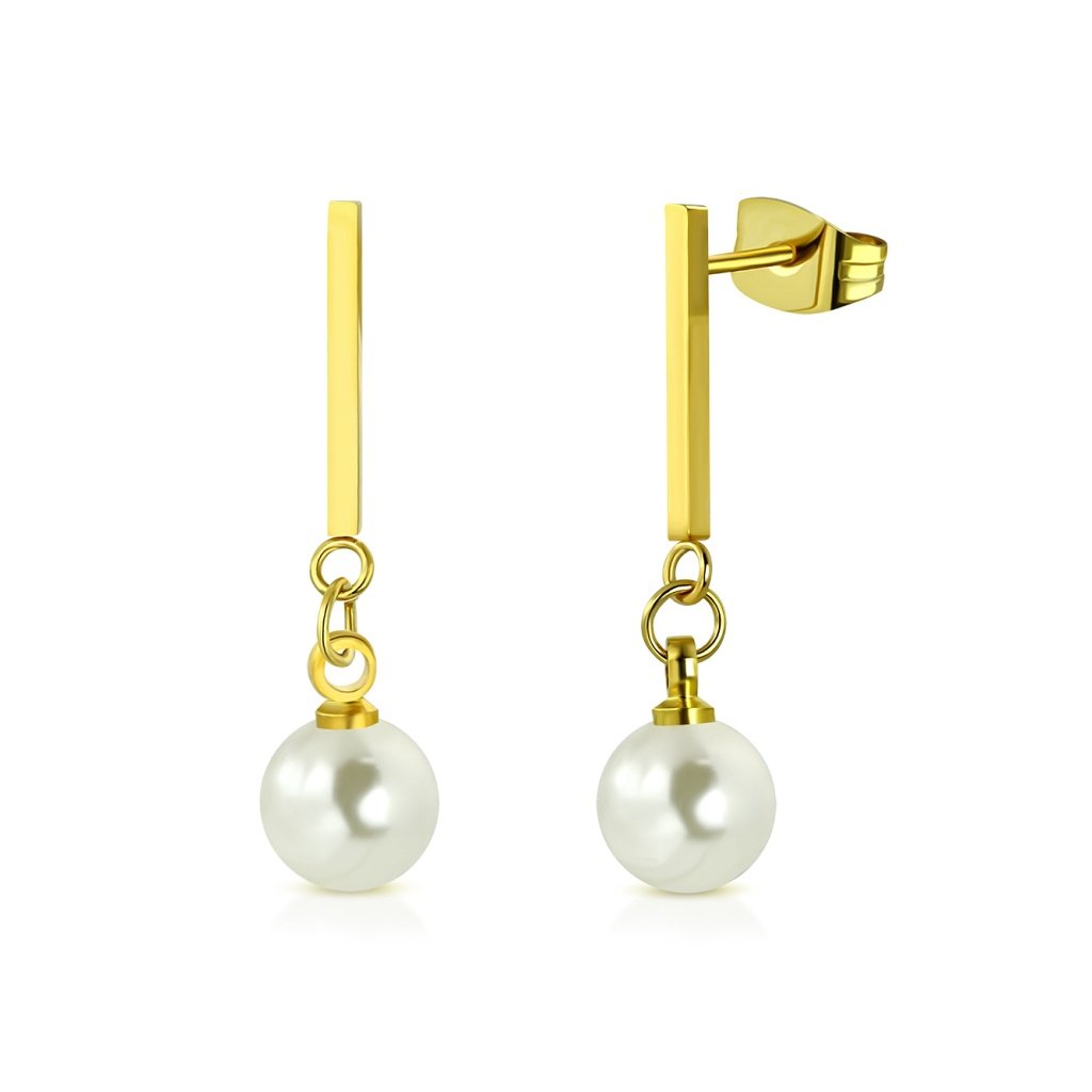 Náušnice v zlatej farbe visiace chirurgickej ocele s perličkou