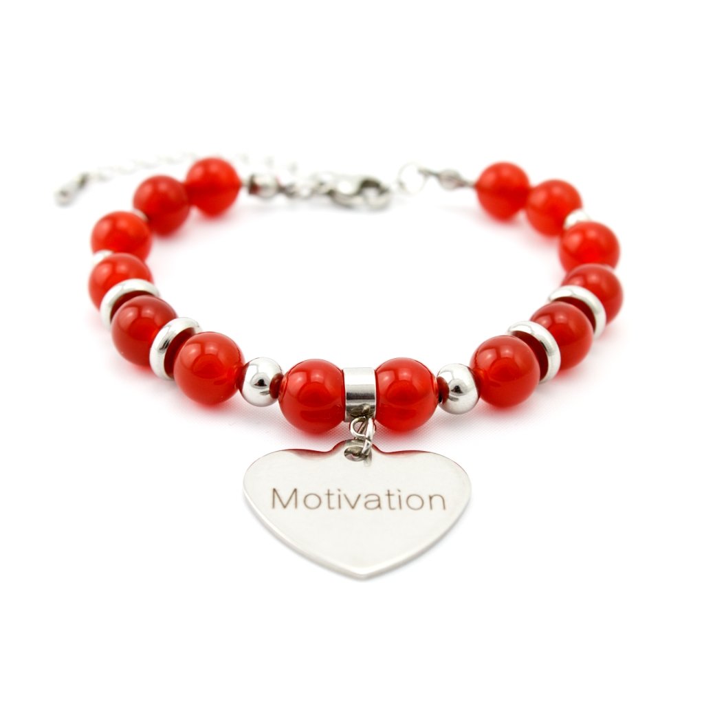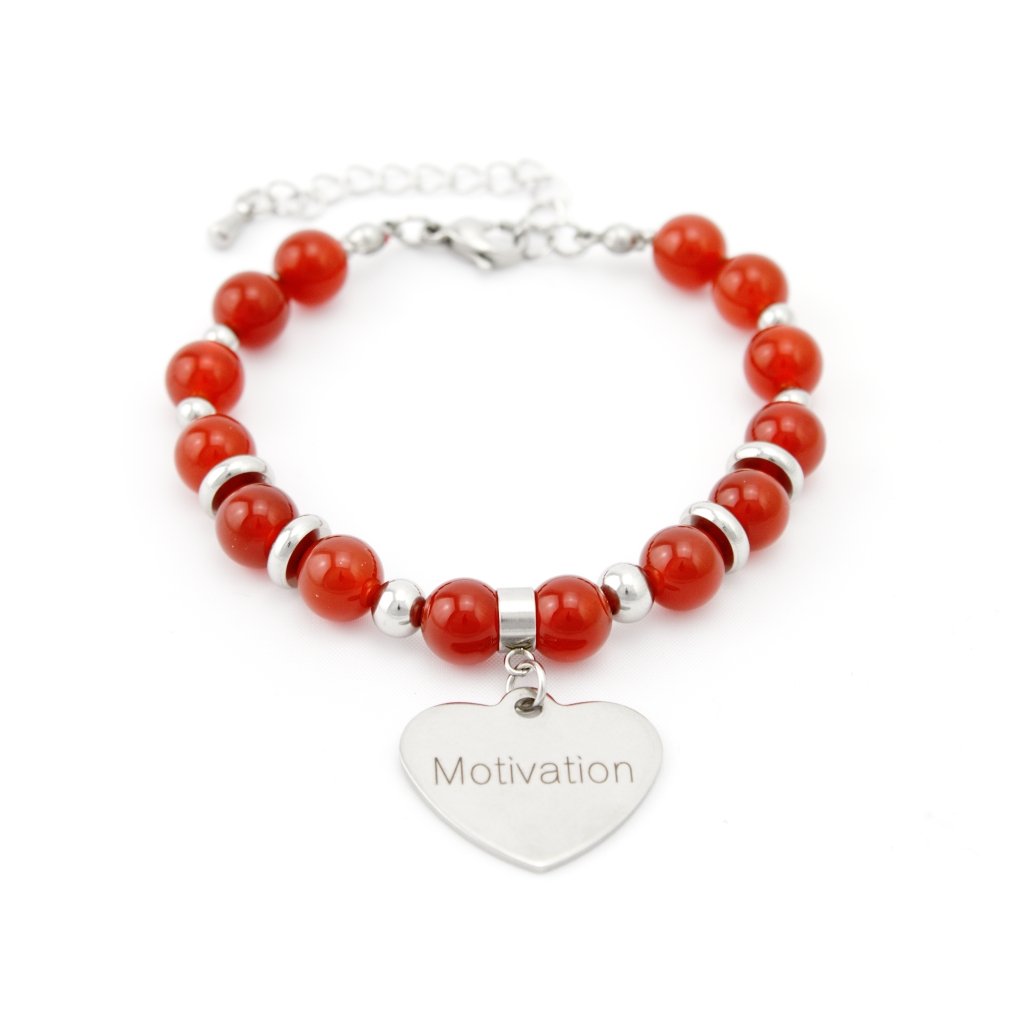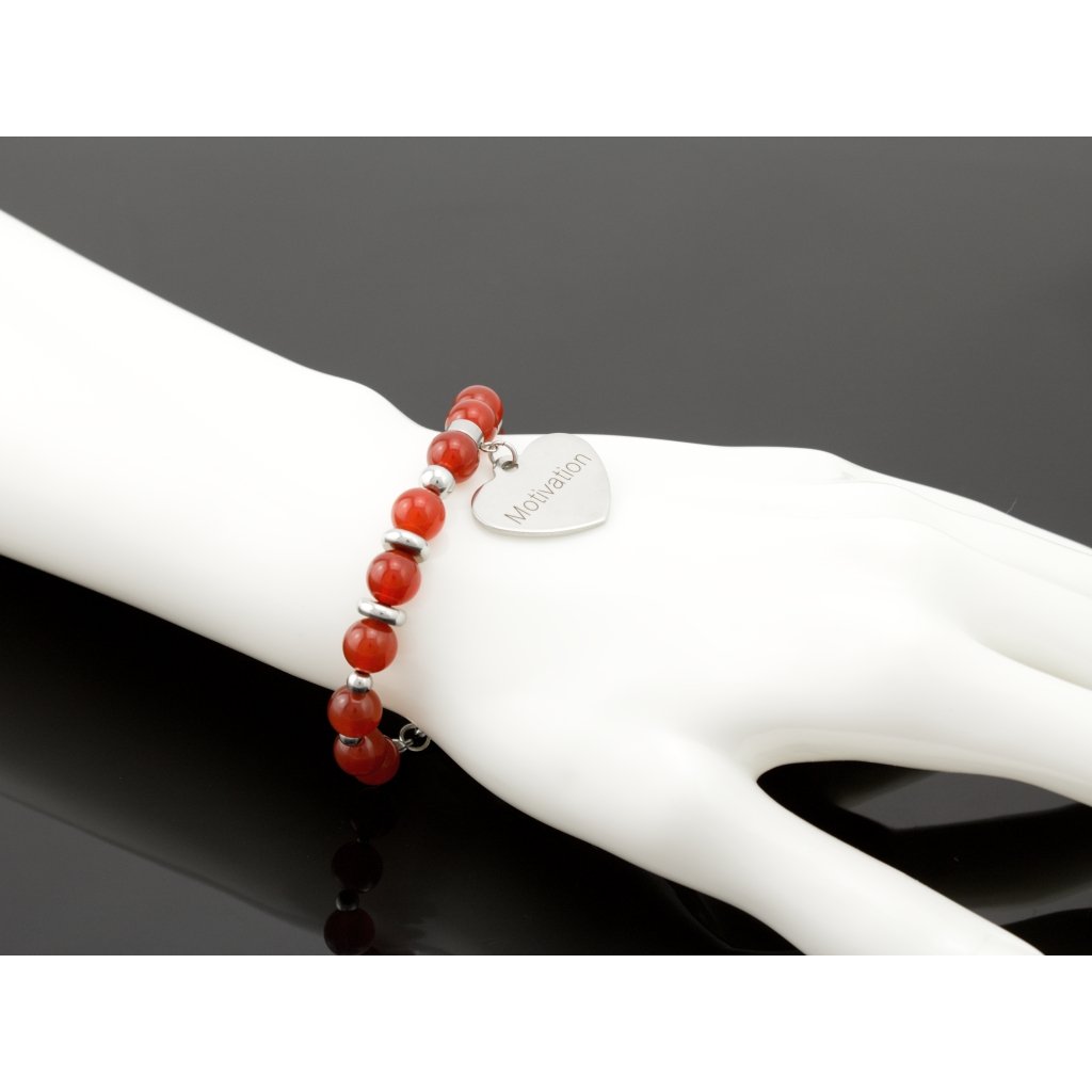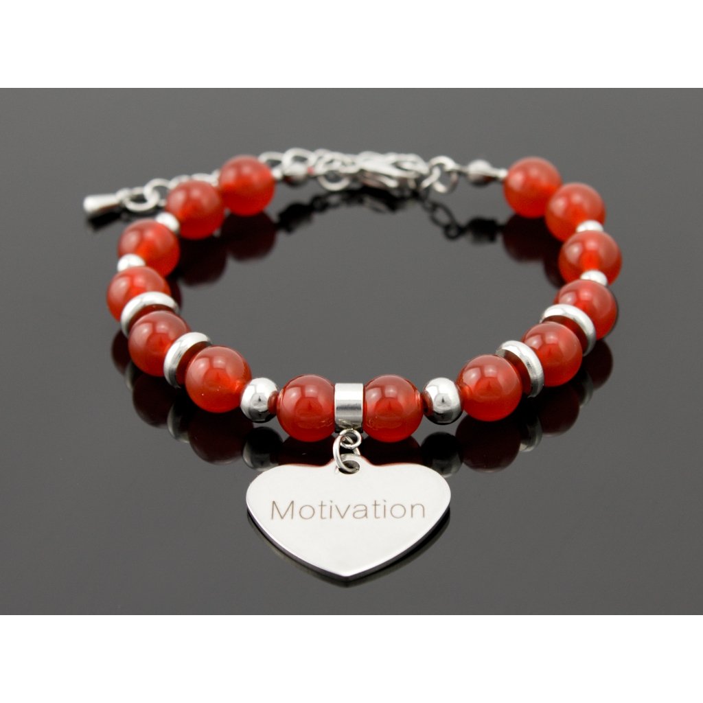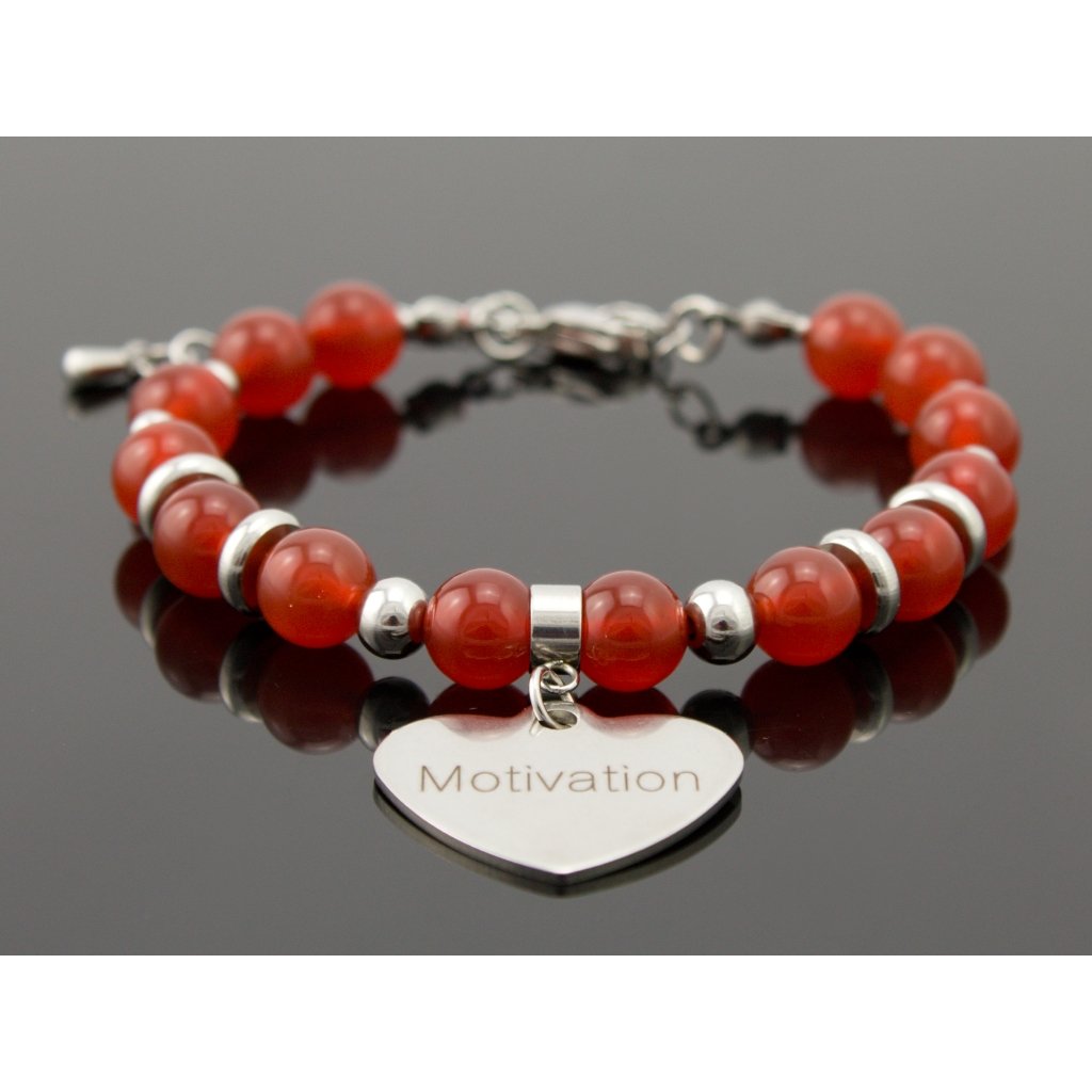 Tento náramok je špeciálne zostavení pre dámy ktoré potrebujú zvýšiť motiváciu napríklad pri chudnutí, alebo zbavovaní sa rôznych zlozvykov. Srdiečko s nápisom Motivation nie je len ozdobným prvkom, ale bude Vám pripomínať Váš cieľ vždy, keď sa na náramok pozriete. Karneol Vám pomôže vytrvať a posilní Vašu motiváciu, nakoľko karneol je polodrahokam, ktorý pomáha nájsť životnú cestu a pomáha plniť ľudské sny. Tento šperk je vhodný pre všetky vekové kategórie a je určený na bežné každodenné nosenie. Napriek tomu že karneol je oranžovo - červený tak sa veľmi dobre kombinuje.