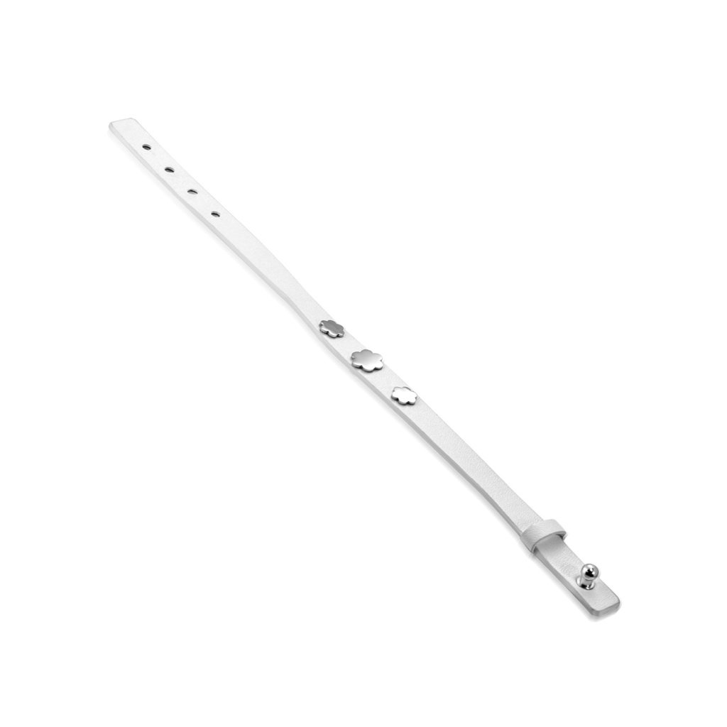 Dámsky náramok z eko kože v bielej farbe s kvetinkami Rosen