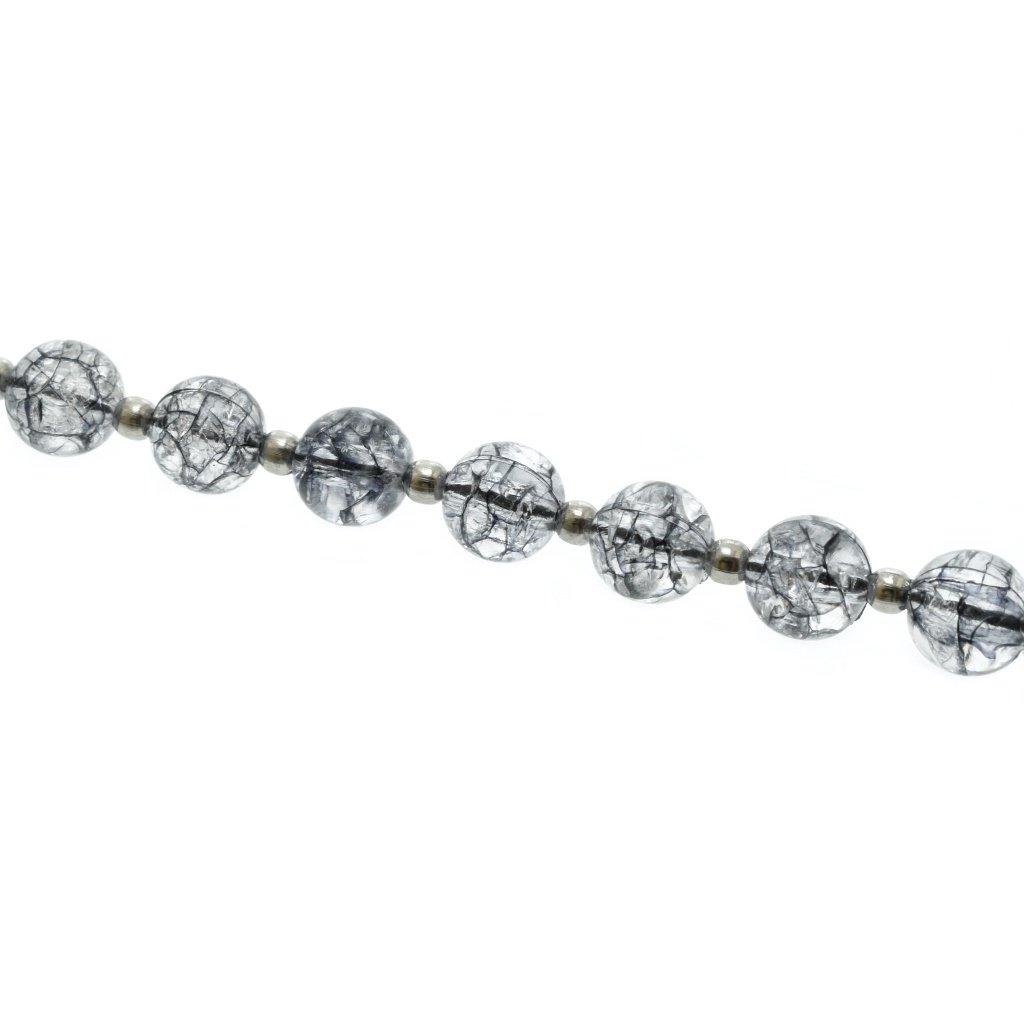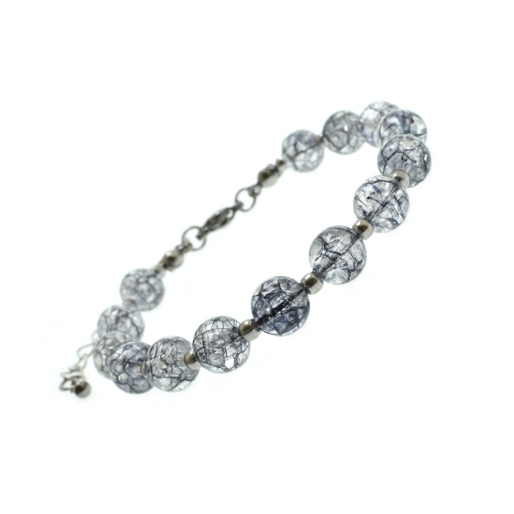 Dámsky náramok vyrobený z chirurgickej ocele a plastu. Väčšie korálky sú vyrobené z plastu s popraskaním vzorom, ktorý je zdobený čiernou farbou. Práve to robí tento náramok veľmi zaujímavým šperkom, ktorý skvelé ozdobí Vašu ruku a oživí každý Vás outfit. Medzi plastovými korálkami sú menšie guličky vyrobené z ocele, rovnako ako zapínanie. Náramok disponuje predĺženou retiazkou (4 cm) na zapínanie, vďaka ktorej si viete nastaviť potrebnú dĺžku náramku. Šperky z chirurgickej ocele, alebo v jej kombinácií, sú stále viac vyhľadávanými, pretože oceľ je materiál, ktorý ponúka mnoho výhod. Oceľové šperky nekorodujú, nečernajú, nestrácajú svoj lesk a tvar. Sú antialergické a vhodné na bežné každodenné nosenie.