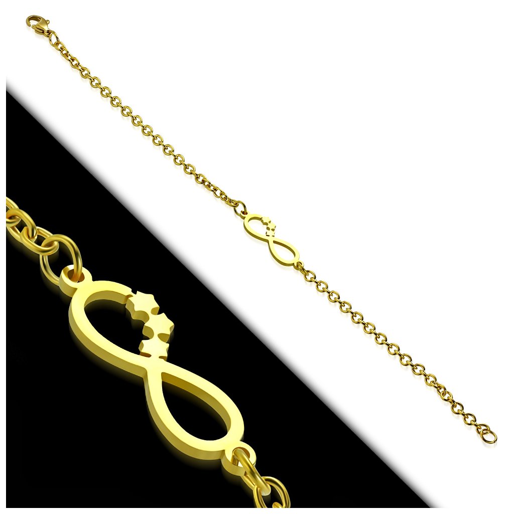 Vlastnosti a opis: Náramok dámsky z chirurgickej ocele v zlatej farbe s ležatou osmičkou