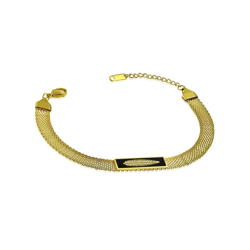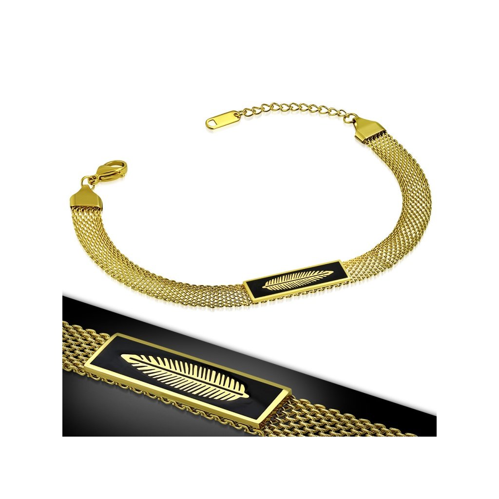 Dámsky oceľový náramok v zlatom prevedení s pierkom