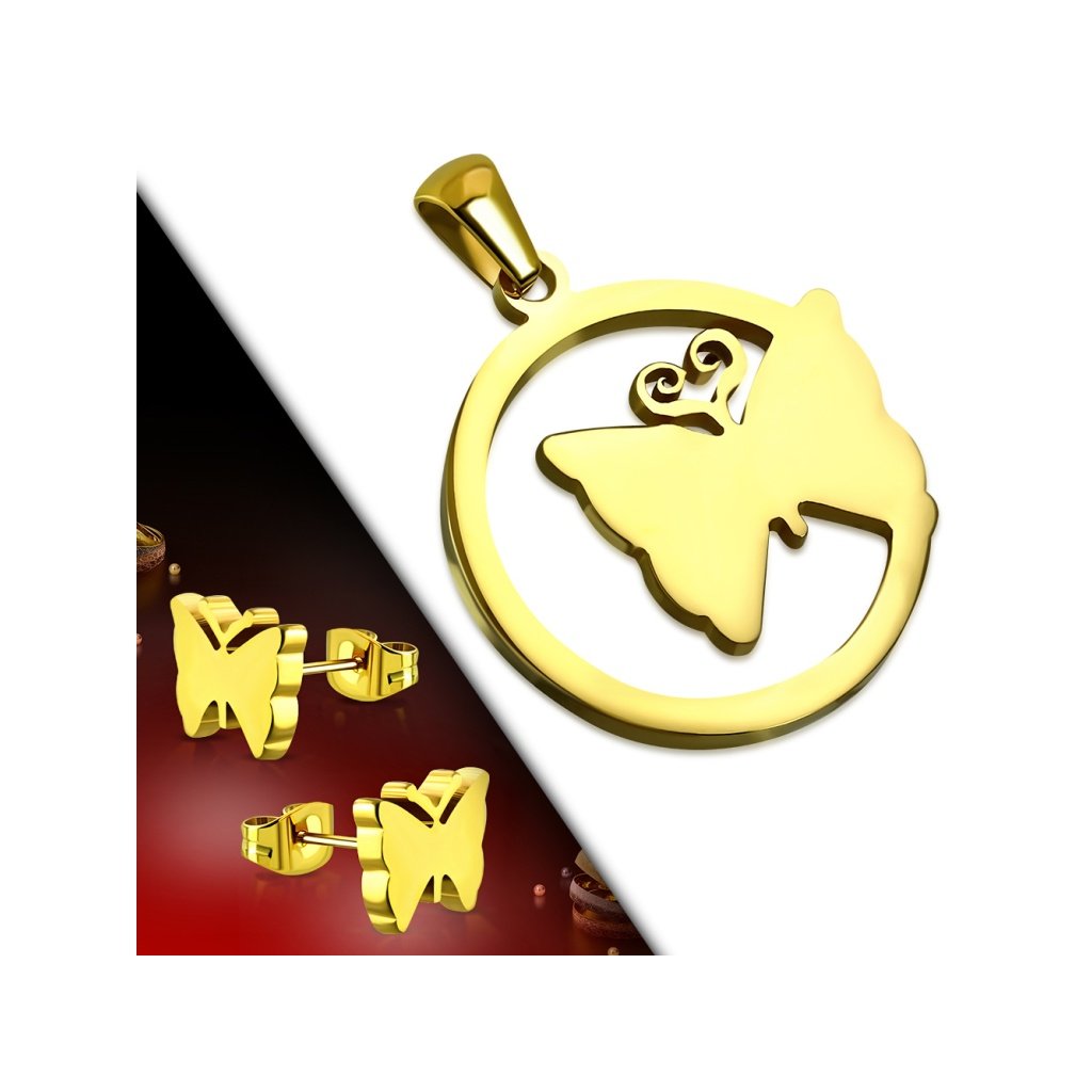 Dámsky set okrúhly z chirurgickej ocele prívesok a náušnice s motýlikom