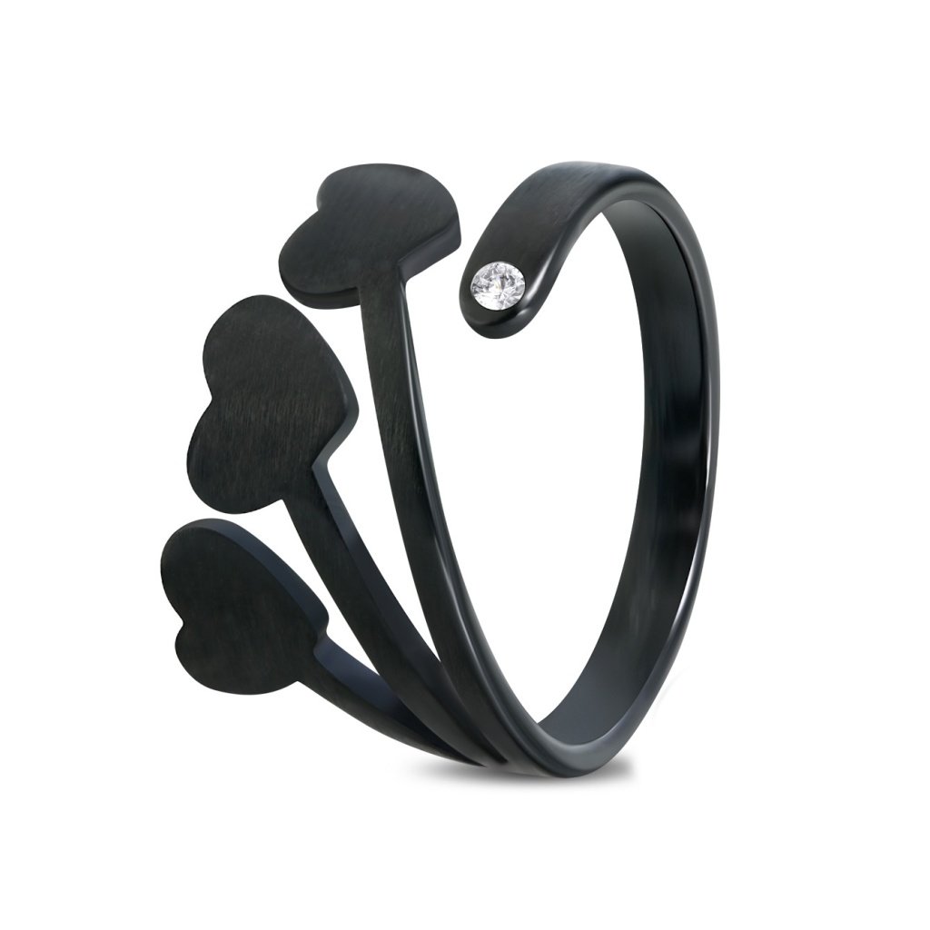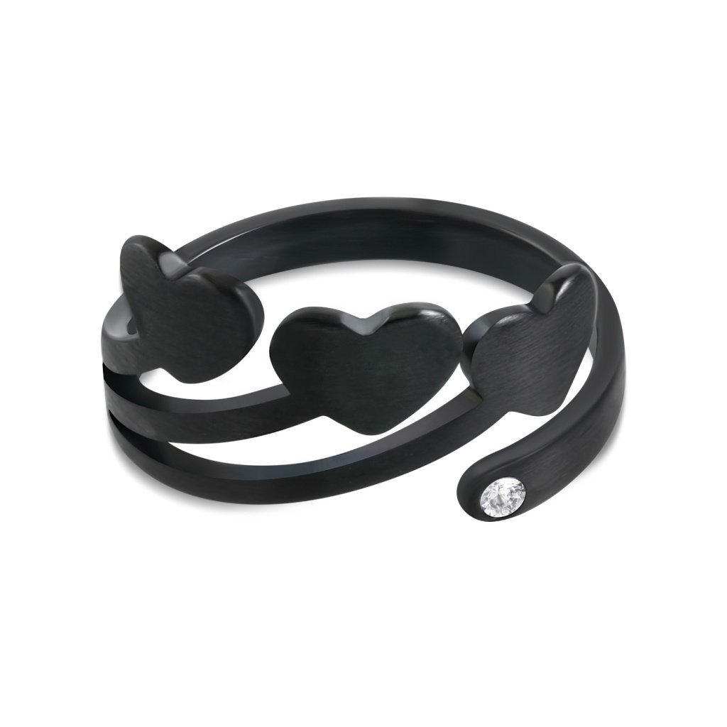 Dámsky prsteň z ocele v čiernej farbe s tromi srdiečkami + darčeková krabička zadarmo