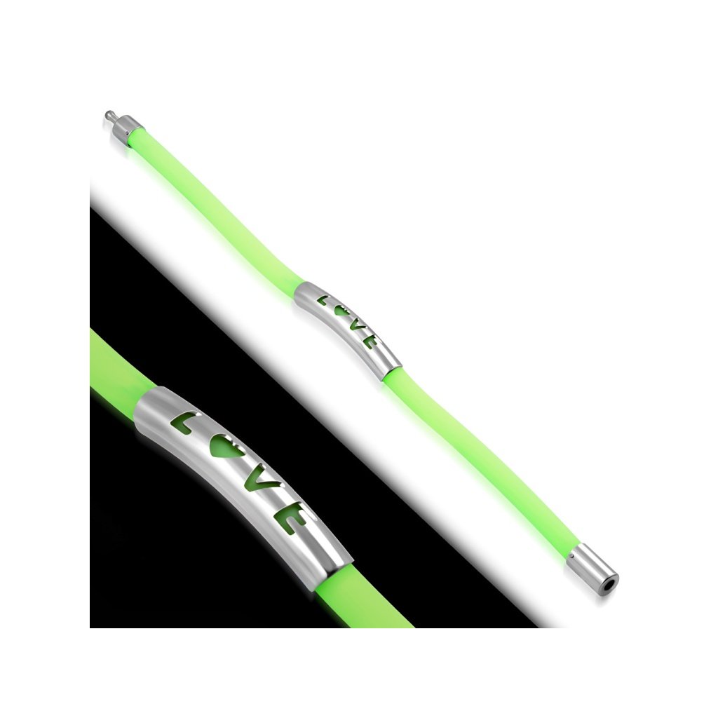 Dámsky silikónový náramok v kombinácií s chirurgickou oceľou. Náramok je vyrobený zo silikónovej gumy peknej jasnej zelenej farby s ozdobou z chirurgickej ocele. Na ozdobe je nápis LOVE, čo znamená láska. Týmto letným náramkom si skvele doplníte akýkoľvek svoj outfit a zladíte s náušnicami, či príveskom. Zapínanie je vyrobené z kvalitnej chirurgickej ocele, ktorá nečerná, nekoroduje a ma dlhú životnosť. Náramok je vhodný na bežné každodenné nosenie.