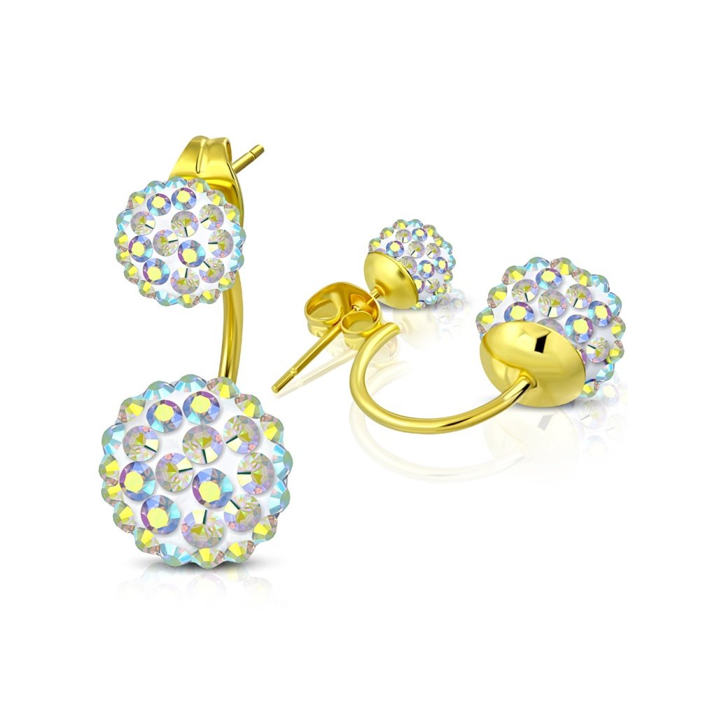 Náušnice dvojité Shamballa z chirurgickej ocele zlato-biele s farbeným odleskom