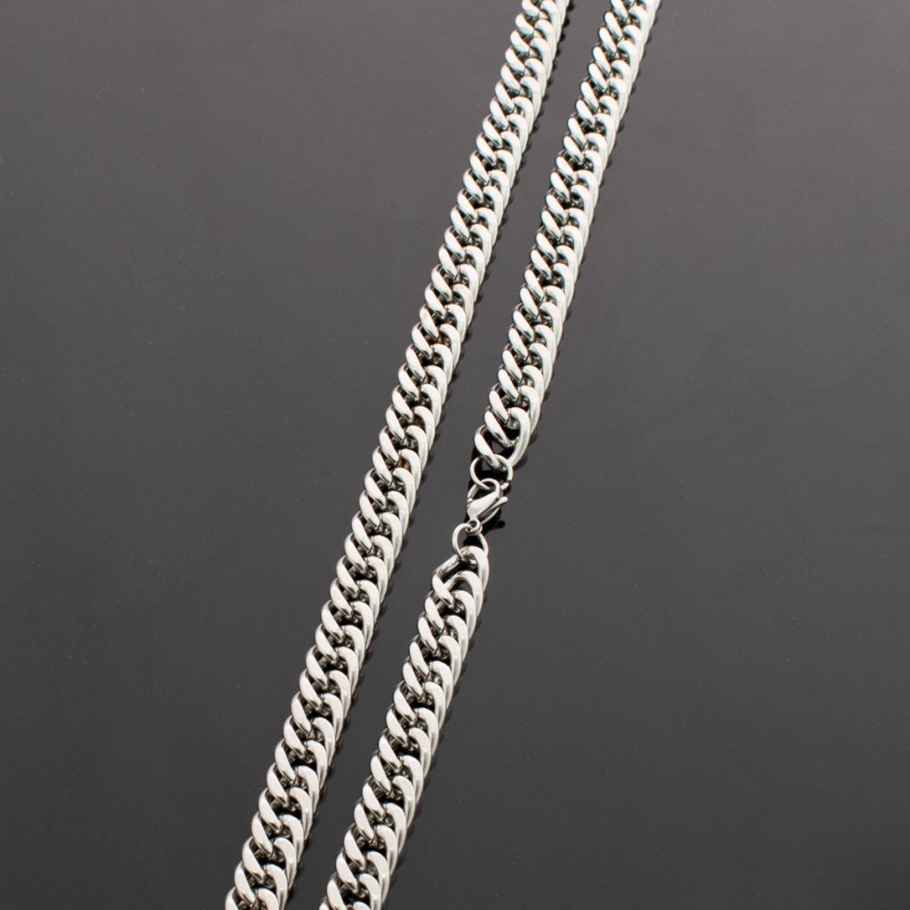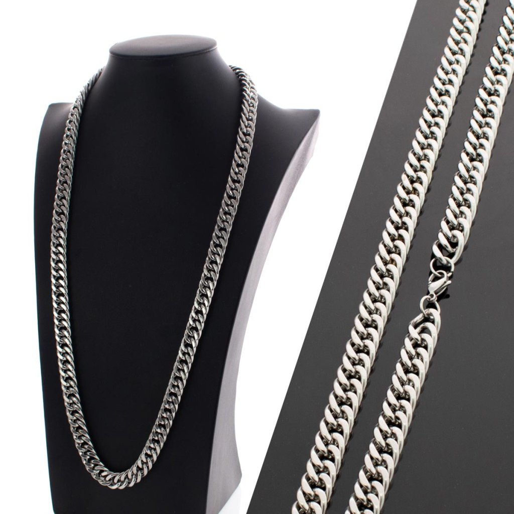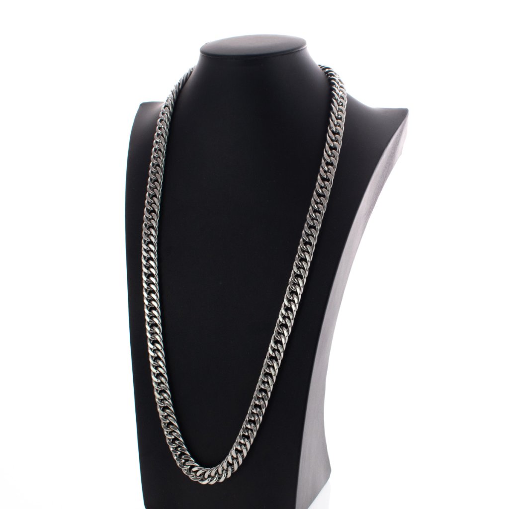 Táto retiazka v striebornom prevedení z chirurgickej ocele je ideálna pre mužov, ktorí chcú vyzerať jedinečne a chcú za každú cenu vyniknúť. Retiazka je vyrobená z kvalitnej chirurgickej ocele. Dĺžka retiazky je 75 cm a hrúbka 2,2 mm. Chirurgická oceľ je hypoalergénny materiál, takže je vhodná aj pre ľudí s citlivou pokožkou.