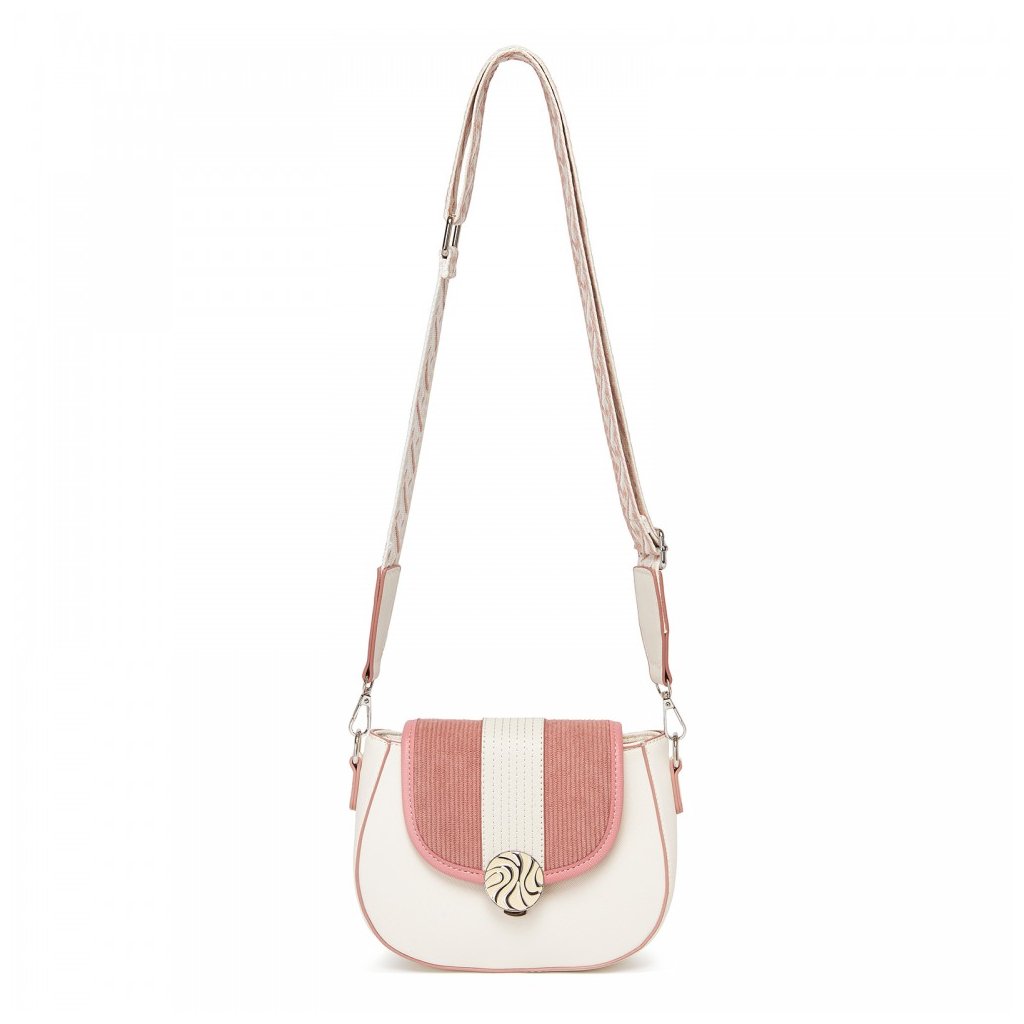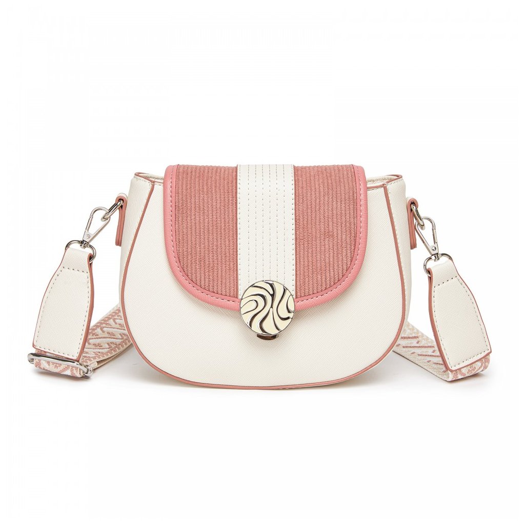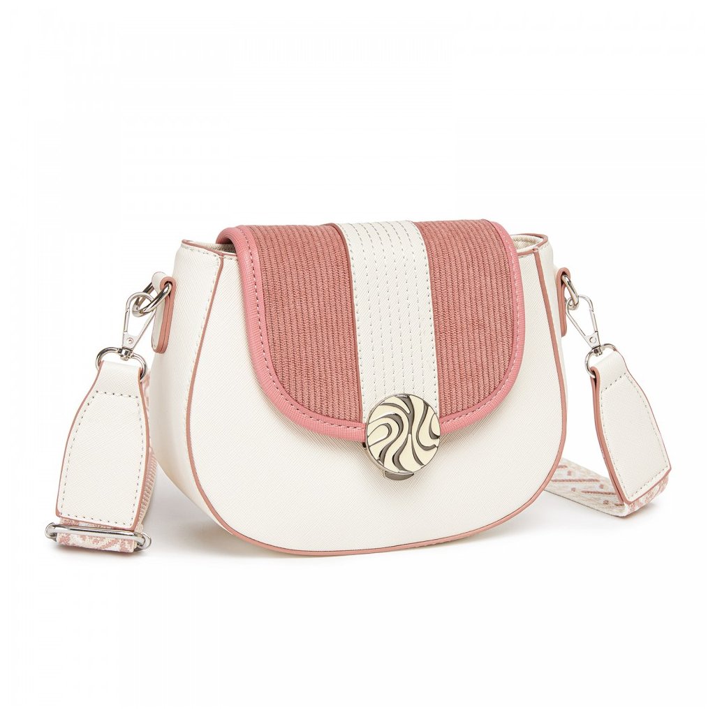 Kabelka - elegance crossbody s manšestrovým detailom, ružovo/béžová