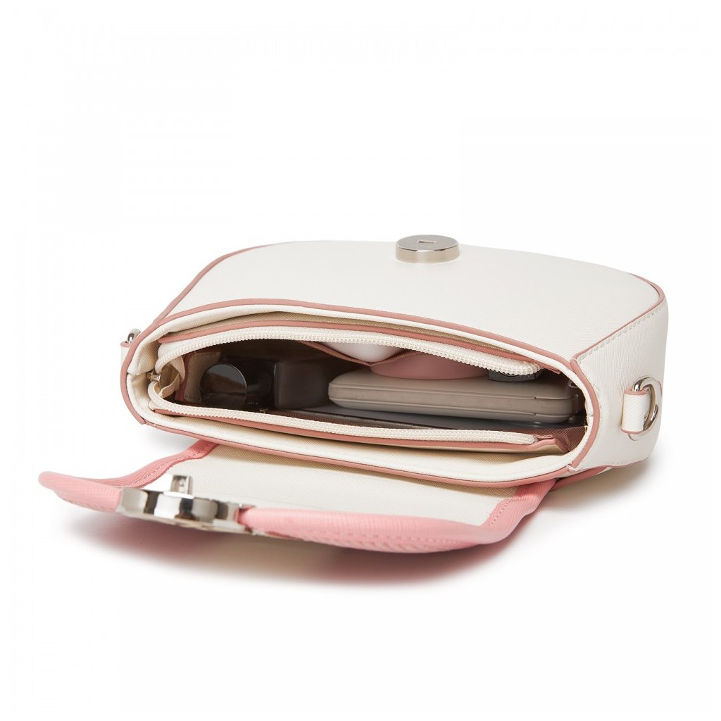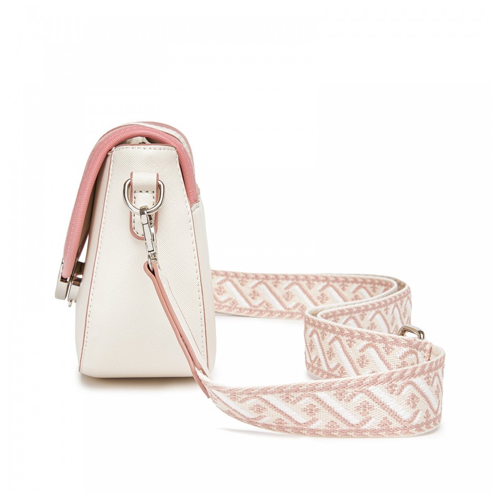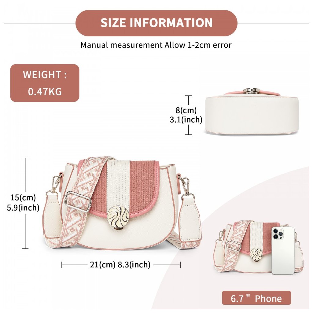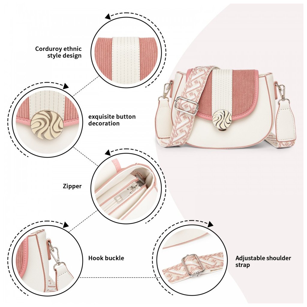 Kabelka - elegance crossbody s manšestrovým detailom, ružovo/béžová