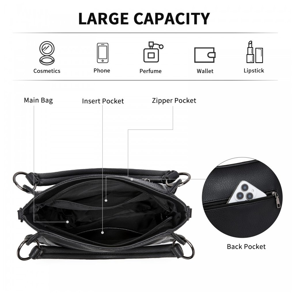 Kabelka – Elegant crossbody, textúrovaná s tkanými detailmi, čierna