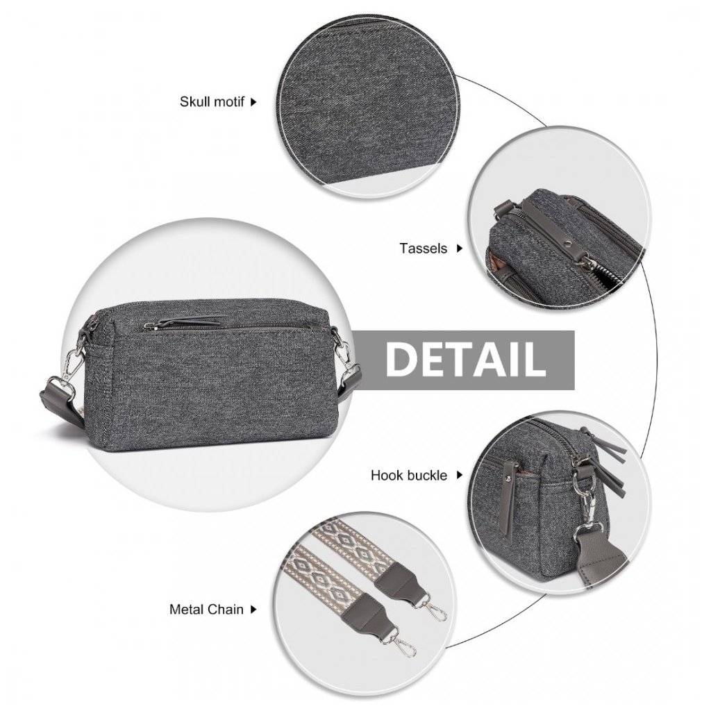Táto šedá crossbody kabelka je dokonalým spojením funkčnosti a moderného dizajnu. Vyrobená z kvalitnej látky a doplnená o elegantné strieborné detaily, táto kabelka sa hodí na každodenné použitie. Praktické zapínanie na zips udrží vaše veci v bezpečí a dobre usporiadané.
