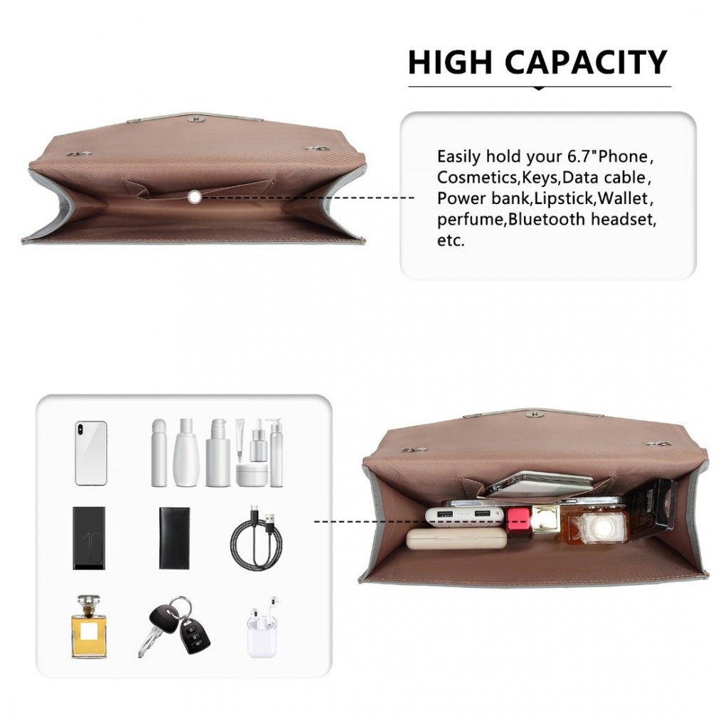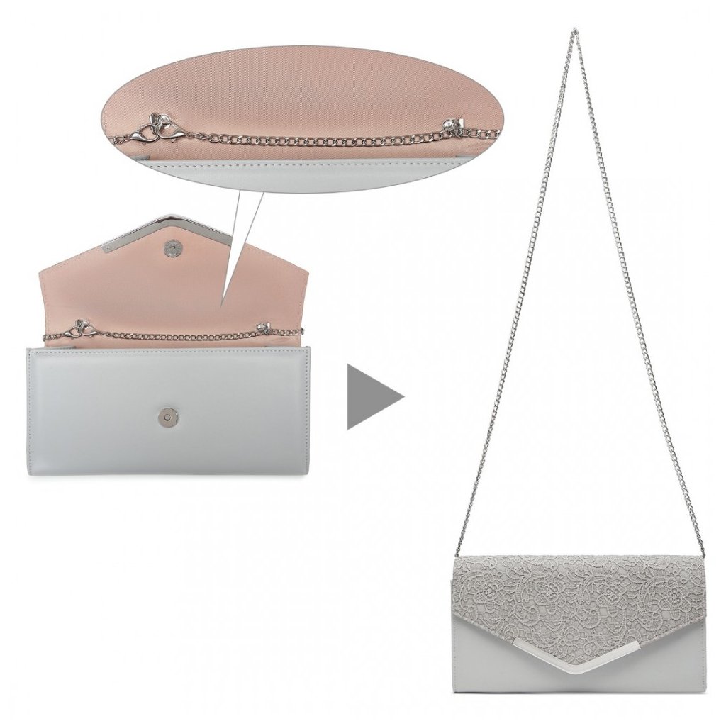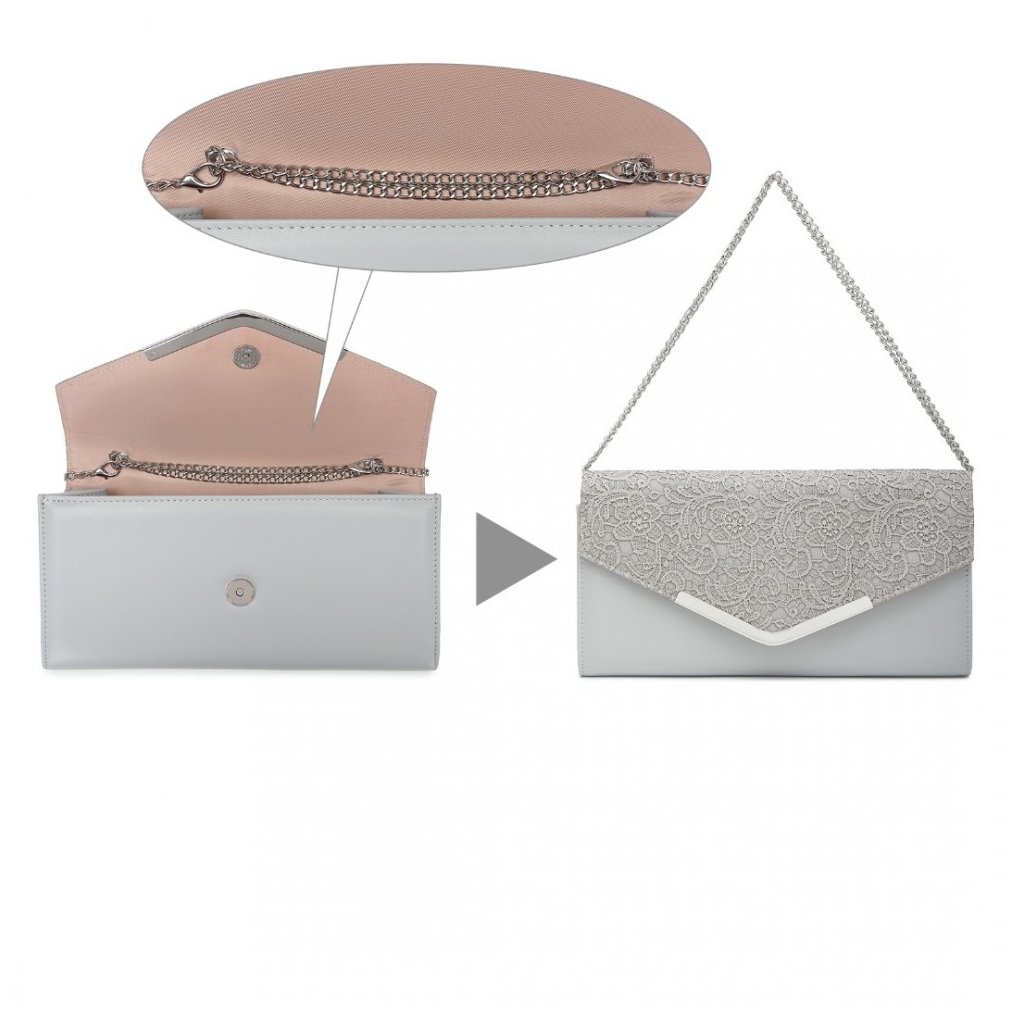 Kabelka je vyrobená z kvalitnej látky, ktorá dotvára jej jemný vzhľad. Jej kompaktné rozmery a tvar sú ideálne pre držanie v ruke a dodávajú vám sofistikovaný vzhľad. Cvok zabezpečuje bezpečné uzatvorenie, a vnútorný priestor poskytuje dostatok miesta pre nevyhnutné drobnosti.