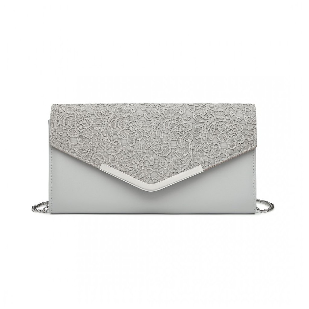 Kabelka - listová, clutch s kvetinovým vzorom, šedá
