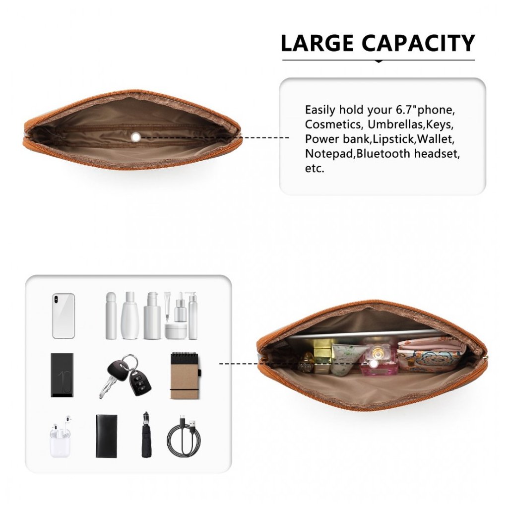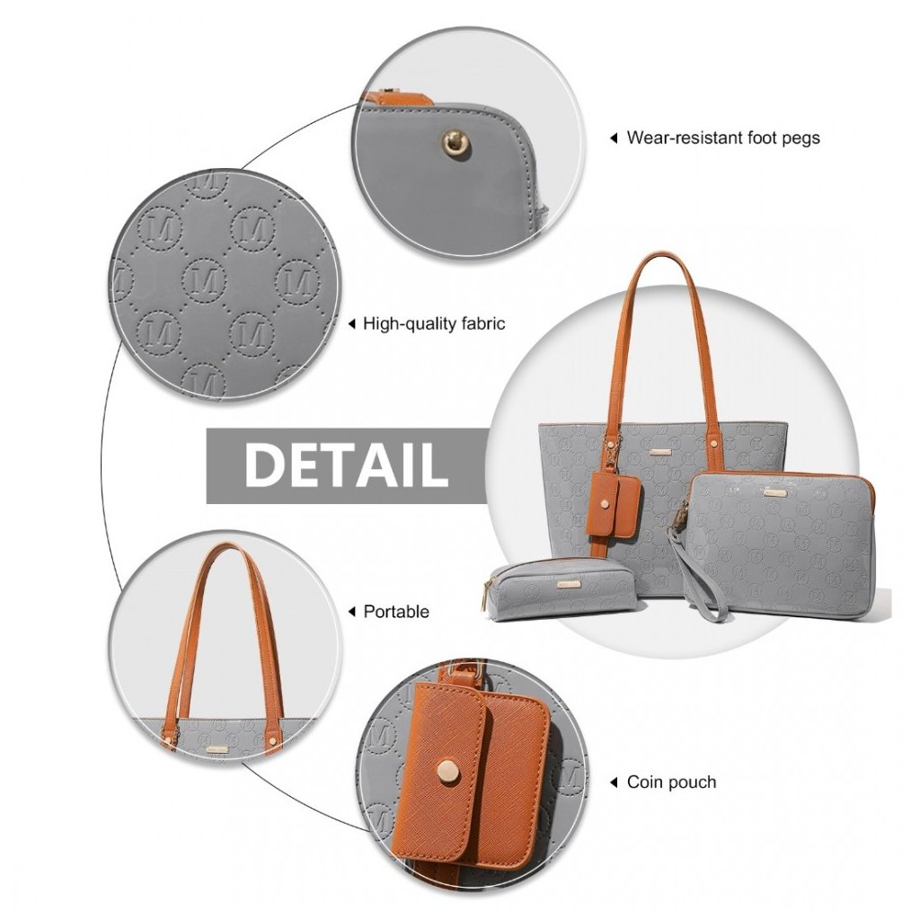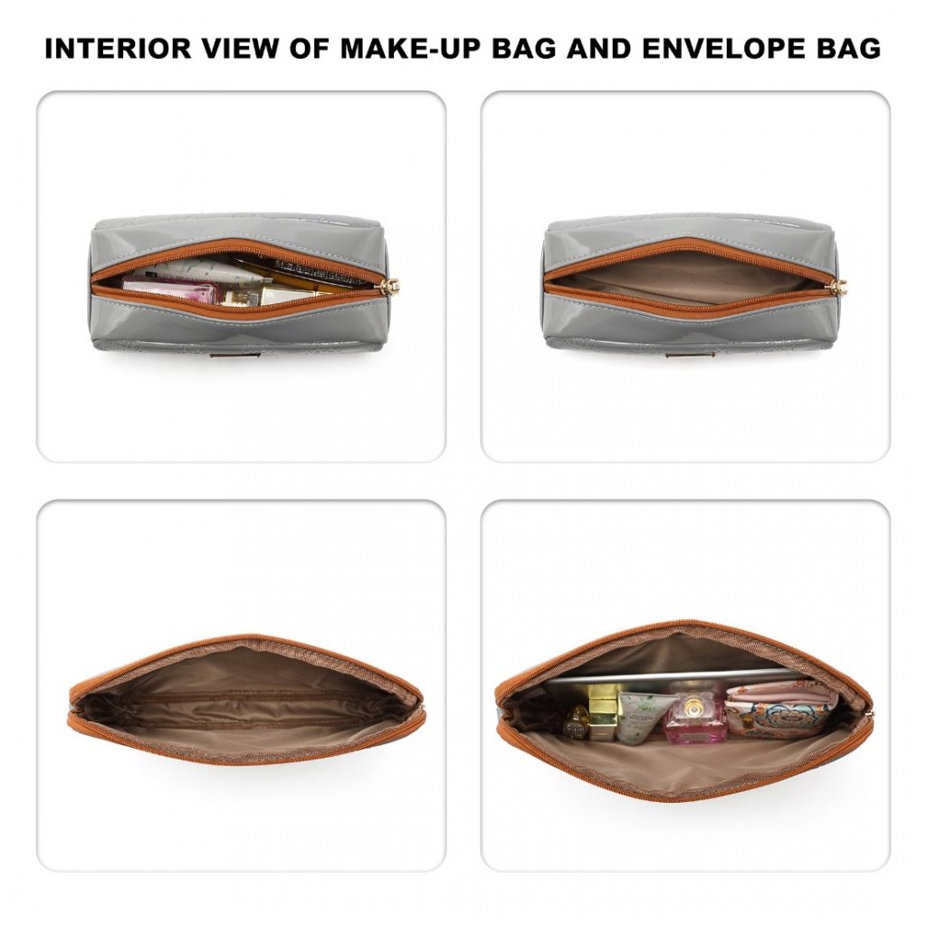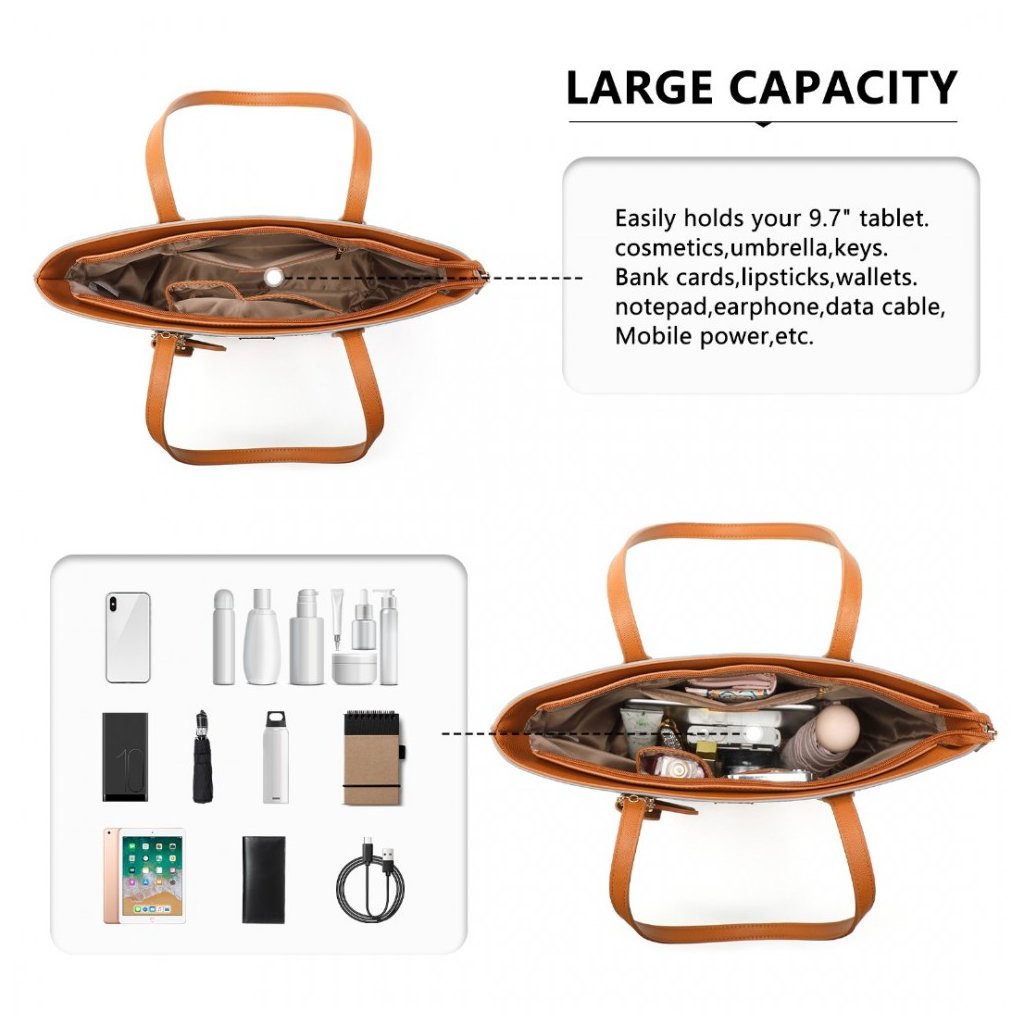 Tento set je vyrobený z lesklej PU kože, ktorá nielenže vyzerá ohromujúco, ale aj ľahko odoláva každodennému opotrebeniu.Zlaté doplnky pridávajú k tomuto setu šmrnc. Ušká a detaily v hnedej farbe dotvárajú dokonalý kontrast, čo vytvára elegantný a štýlový dojem. Set obsahuje štyri kabelky pre maximálnu variabilitu a využitie:- Hlavná kabelka cez rameno: Priestranná a pohodlná na nosenie cez rameno, ideálna pre každodenné používanie.