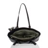 je ušitá zo syntetickej kože Saffiano v kombinácii so striebornými