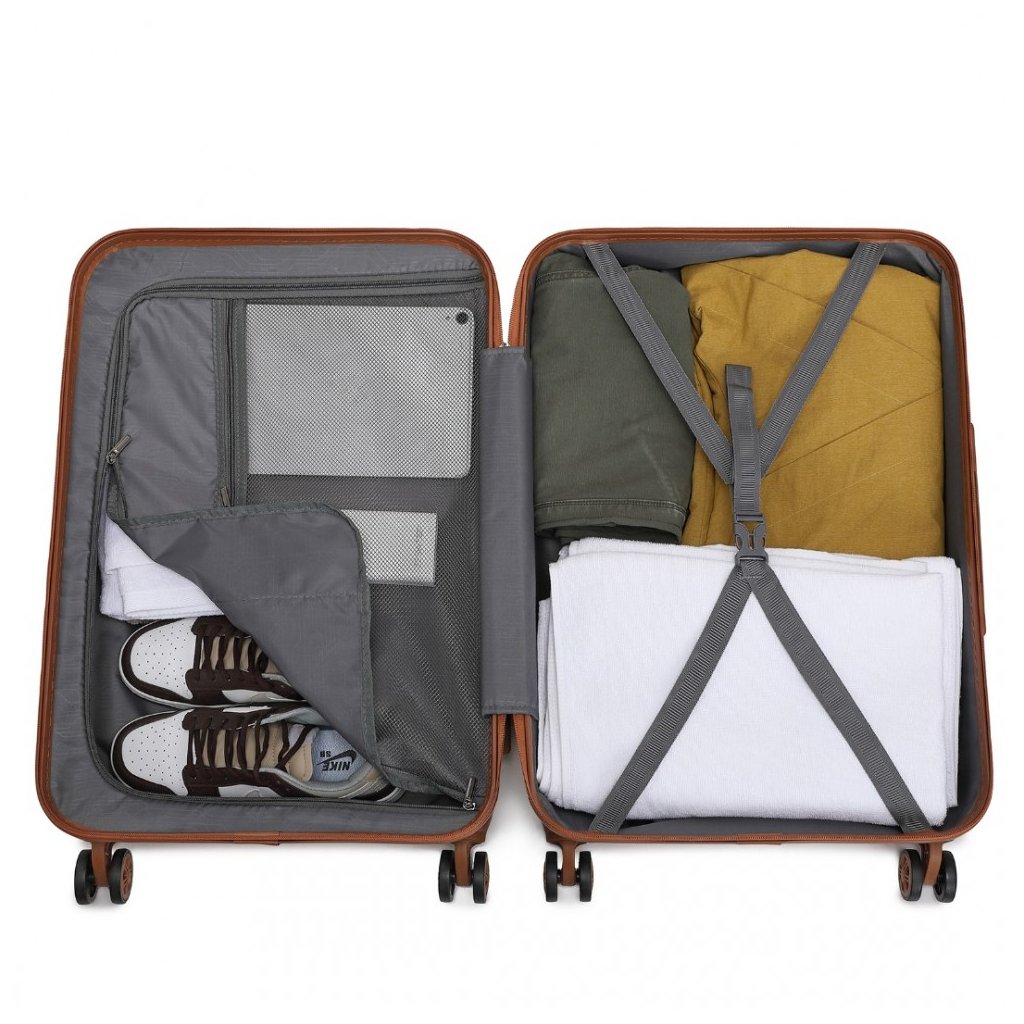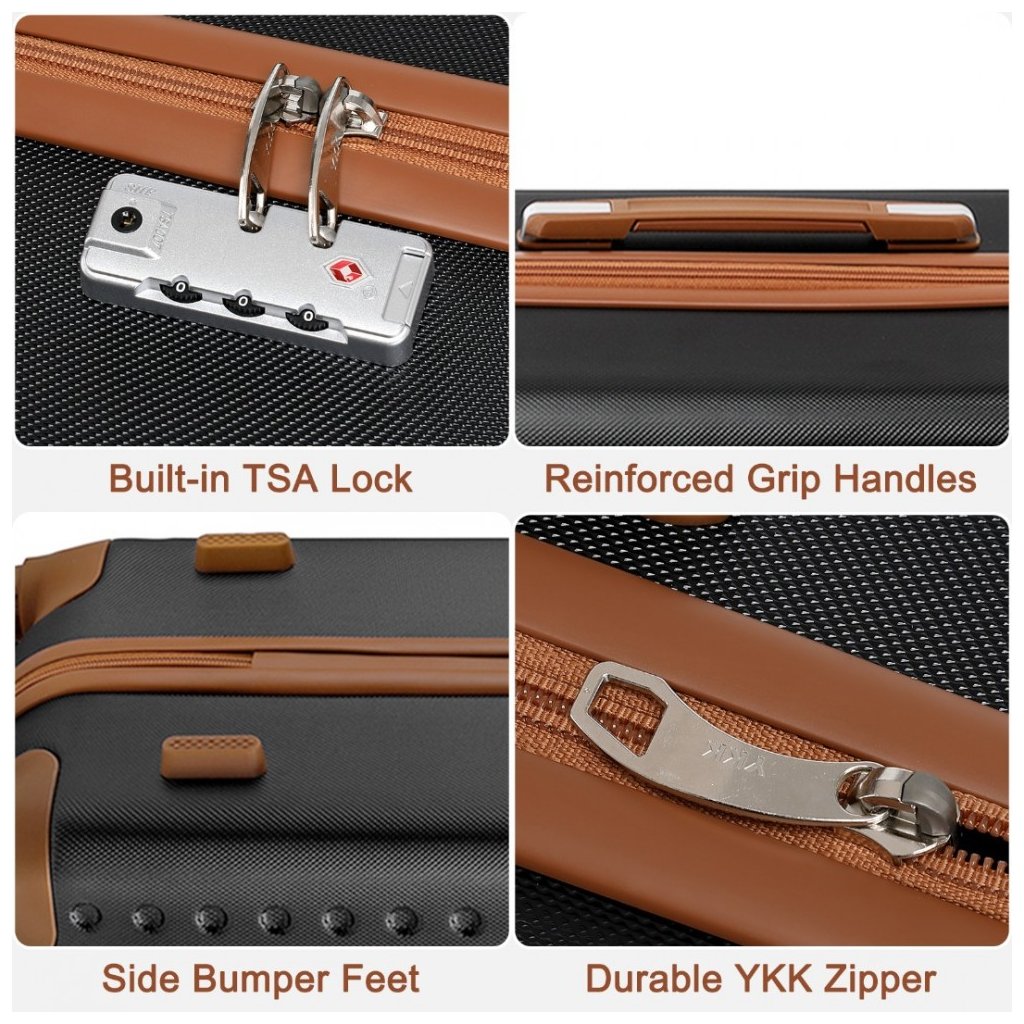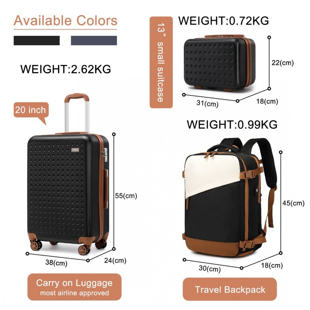 Vyrobený z vysoko kvalitných materiálov, tento set ponúka dlhú životnosť a odolnosť. Čierna farba v kombinácii s hnedými detailmi dodáva setu sofistikovaný a univerzálny vzhľad. Batoh poskytuje dostatok priestoru s množstvom priehradiek a nastaviteľnými popruhmi pre pohodlné nosenie, vrátane miesta na notebook. Kufor s pevnou konštrukciou, teleskopickou rukoväťou a kolieskami zaručuje ľahkú manipuláciu, zatiaľ čo príručný kufrík ponúka rýchly prístup k veciam, ktoré potrebujete mať stále po ruke. S týmto čiernym cestovným setom budete nielen štýlovo pripravení na cestovanie, ale aj perfektne organizovaní na každom kroku.