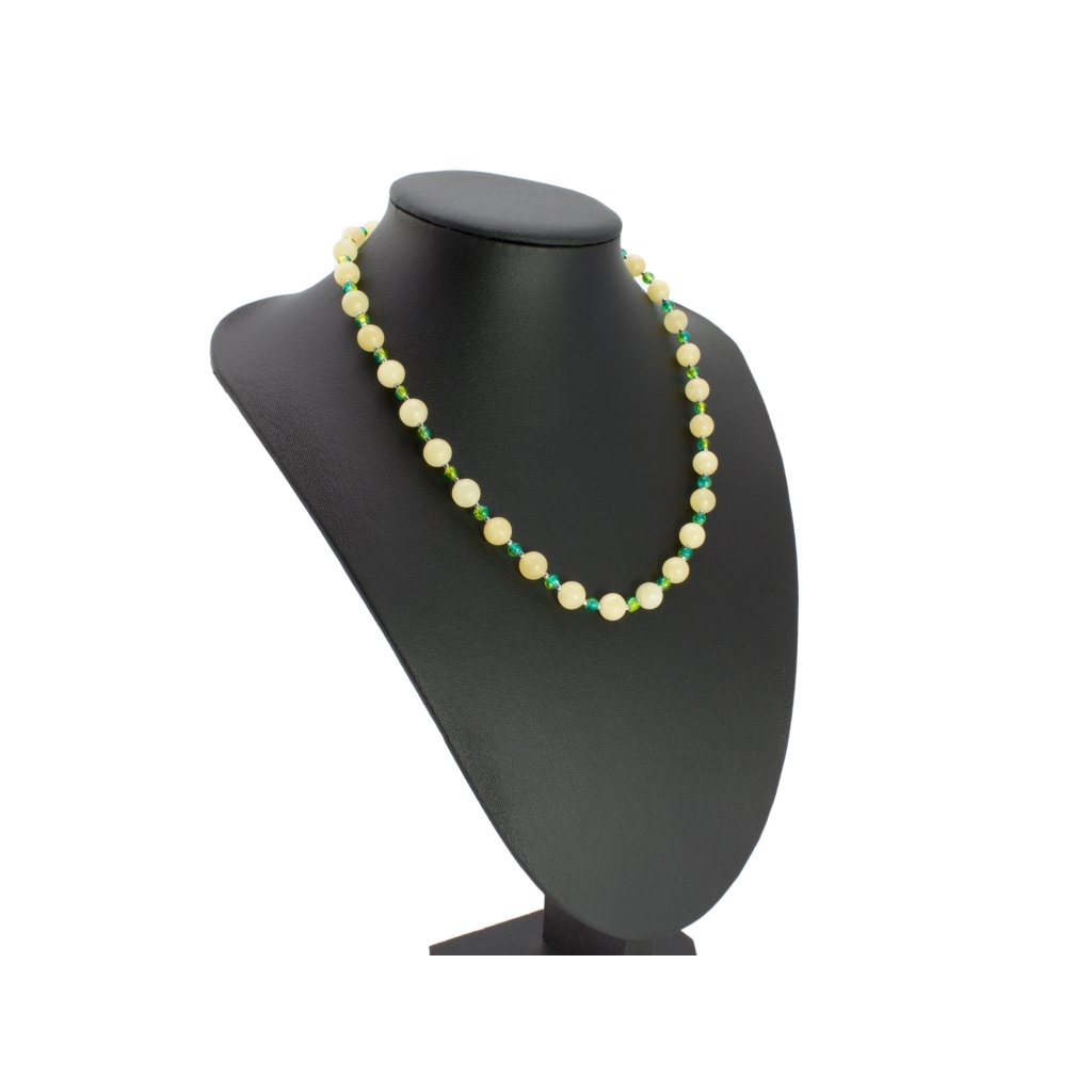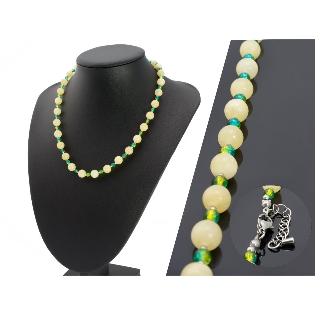 - Materiál náhrdelníku : Polodrahokam Jadeit, Sklenené korálky -práskačky, Chirurgická oceľ,