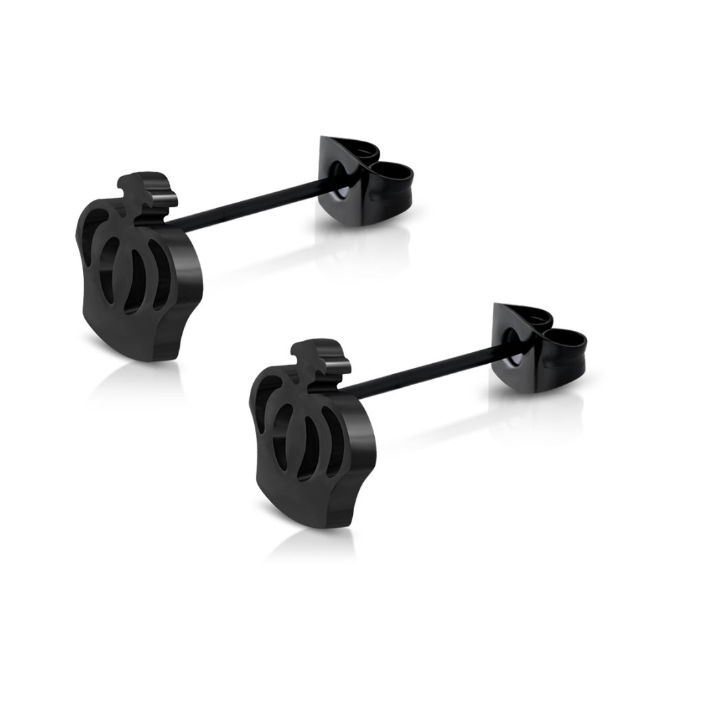 Náušnice z chirurgickej ocele drobné čierne v tvare kráľovskej koruny - Esta