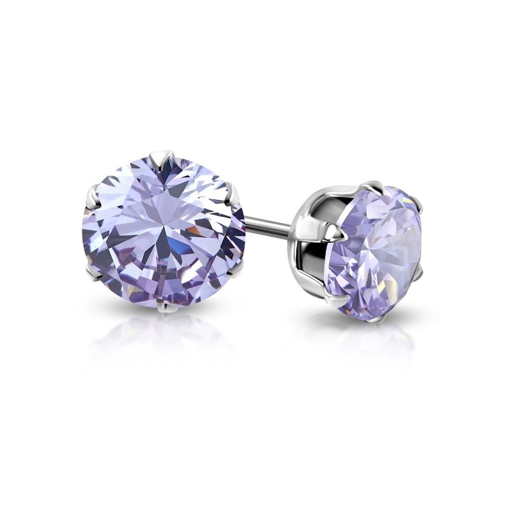 Náušnice napichovacie z chirurgickej ocele z brúseným očkom z kubického zirkónu - bledo fialové