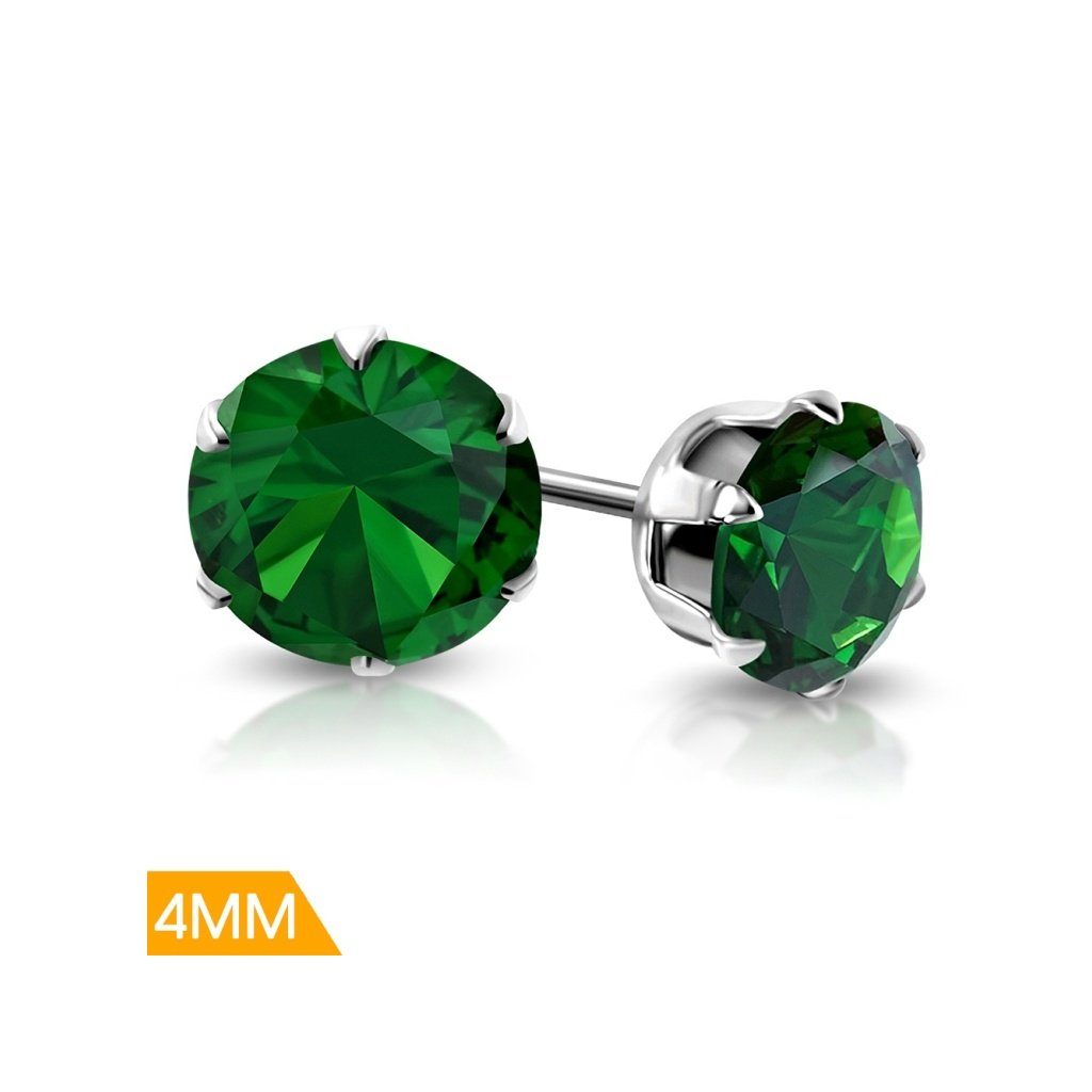 Náušnice zelené s očkom z kubického zirkónu napichovacie z chirurgickej ocele
