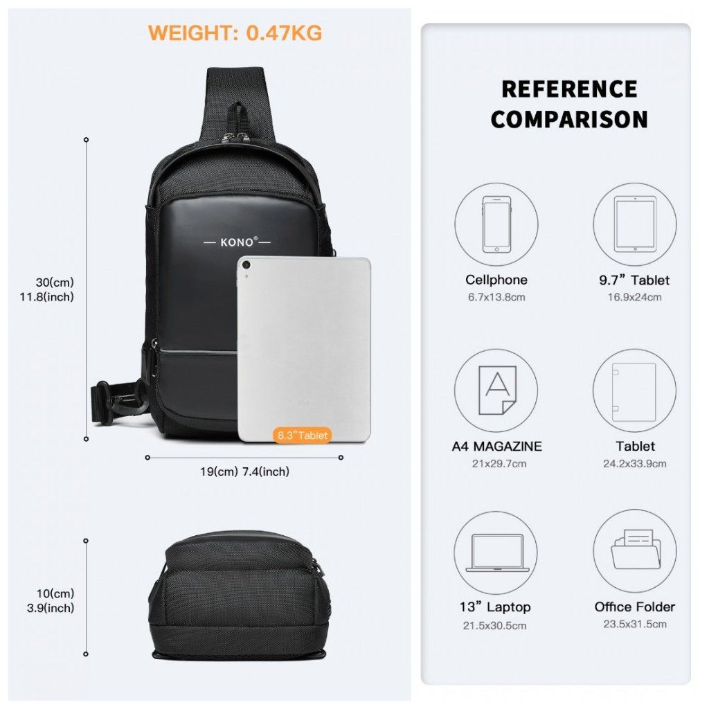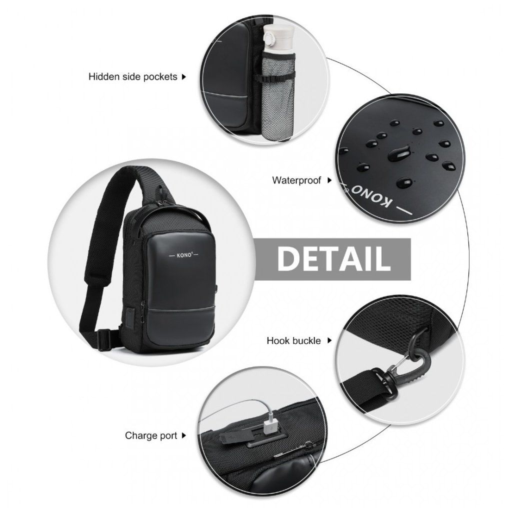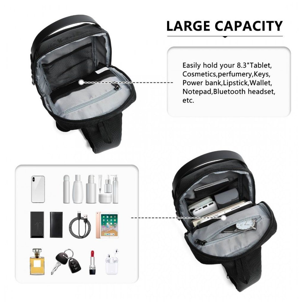 Taška je vybavená USB portom, ktorý umožňuje pohodlné nabíjanie vašich zariadení na cestách. S nastaviteľným popruhom sa taška dá ľahko prispôsobiť na pohodlné nosenie po celý deň. Táto čierna verzia je ideálnym doplnkom pre tých, ktorí hľadajú kombináciu štýlu, funkčnosti a modernej technológie.