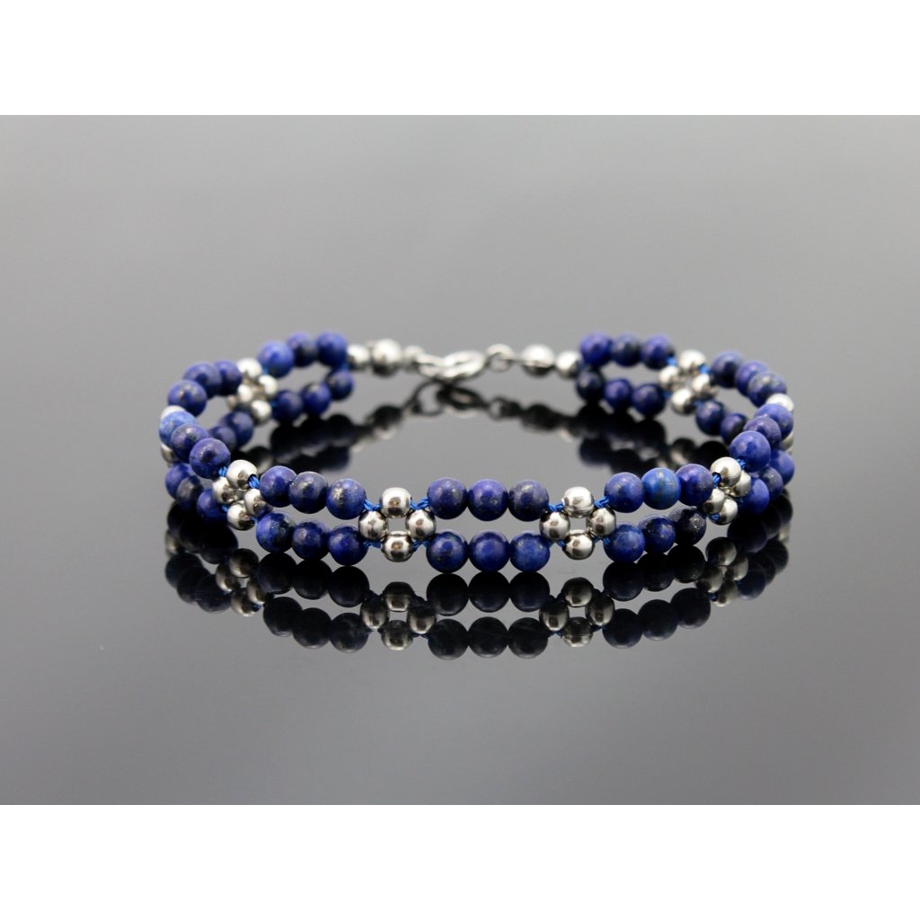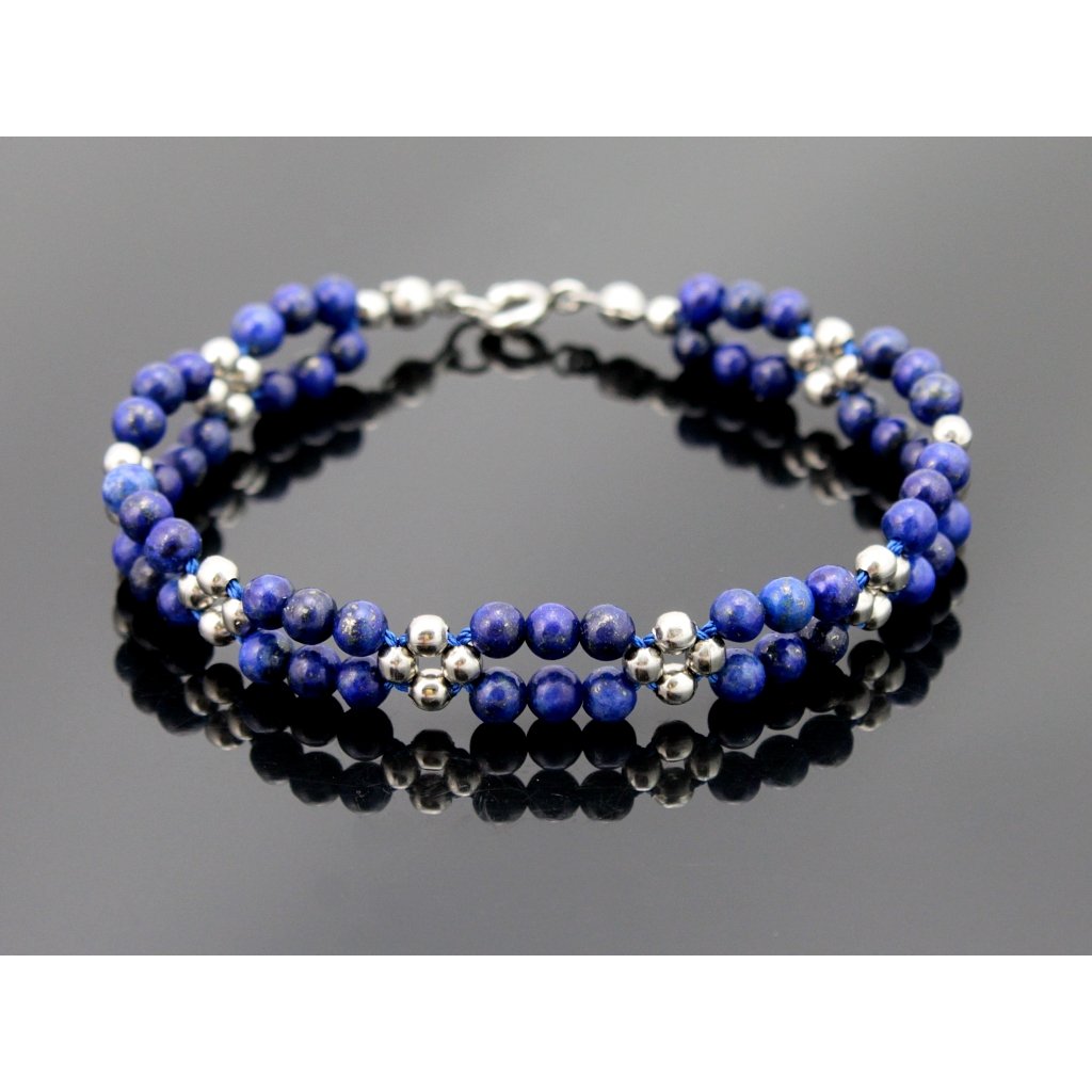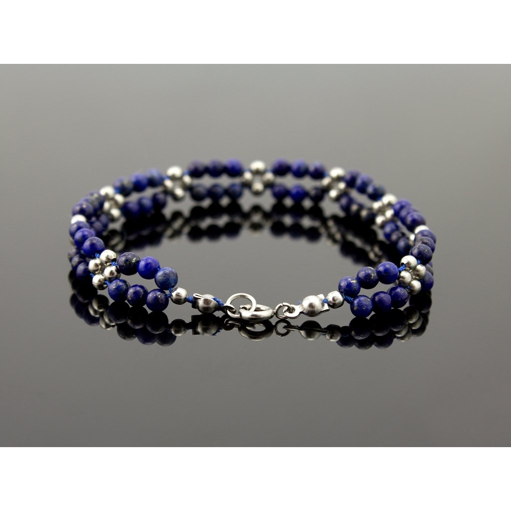 Krásny dvojradový náramok z polodrahokamu Lapis lazuli v kombinácii s korálkami z chirurgickej ocele. Polodrahokam lapis lazuri je prírodný nedofarbovaný. Z mystických vlastnosti Egypťania spájali tento polodrahokam s plodnosťou a je považovaní za kameň symbolizujúci priateľstvo a oddanosť. Náramok je určený na bežne každodenné nosenie. Je vhodný pre všetky vekové kategórie . Veľmi dobre sa kombinuje s inými doplnkami a s celým outfitom