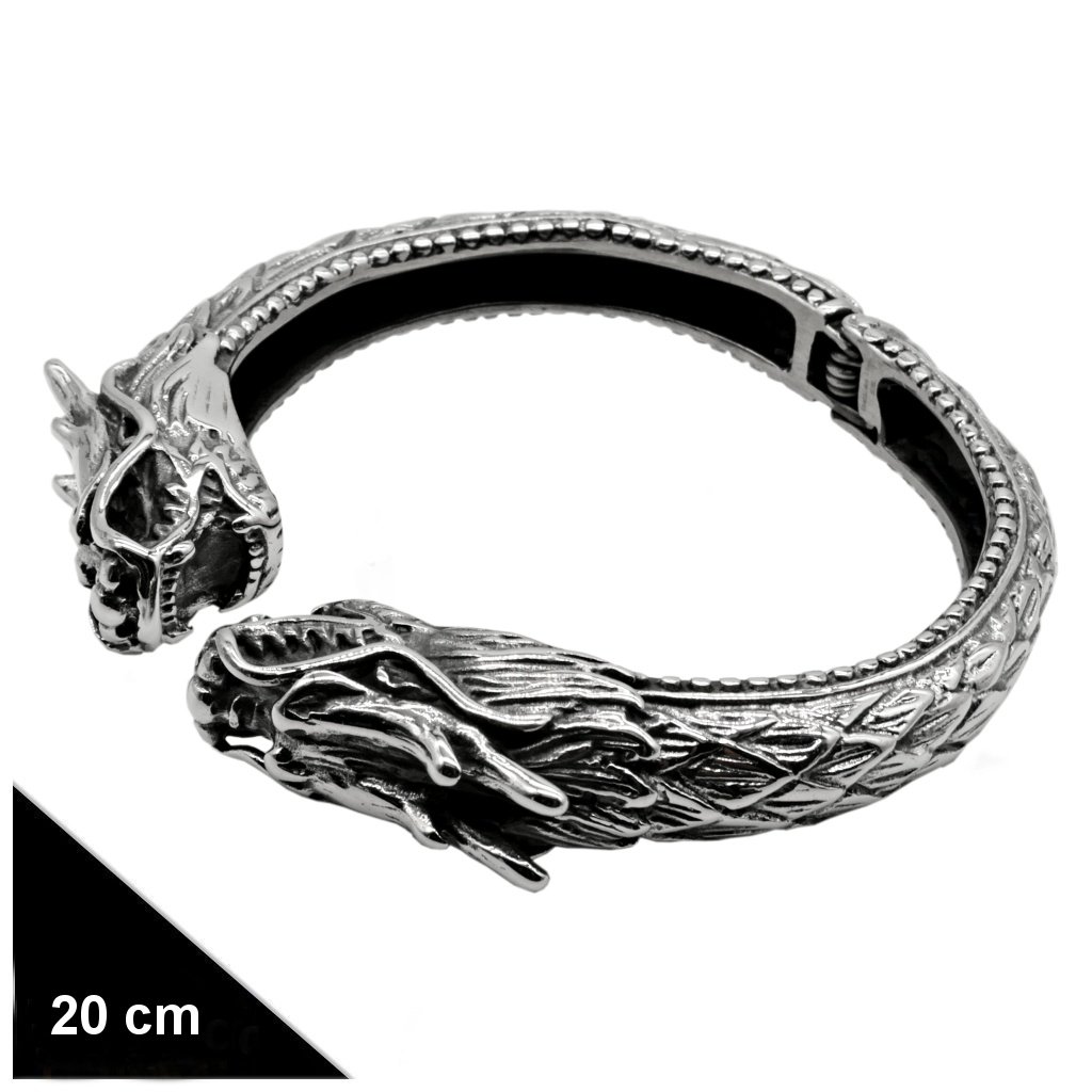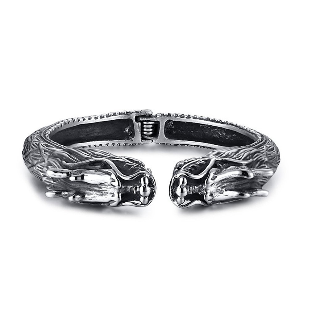 Tento unikátny obručový náramok vyniká svojim výrazným dizajnom dvoch proti sebe stojacich dračích hláv, ktoré predstavujú silu, ochranu a múdrosť. Vyrobený z chirurgickej ocele, náramok je ideálny pre mužov aj ženy vďaka svojmu unisex štýlu.
